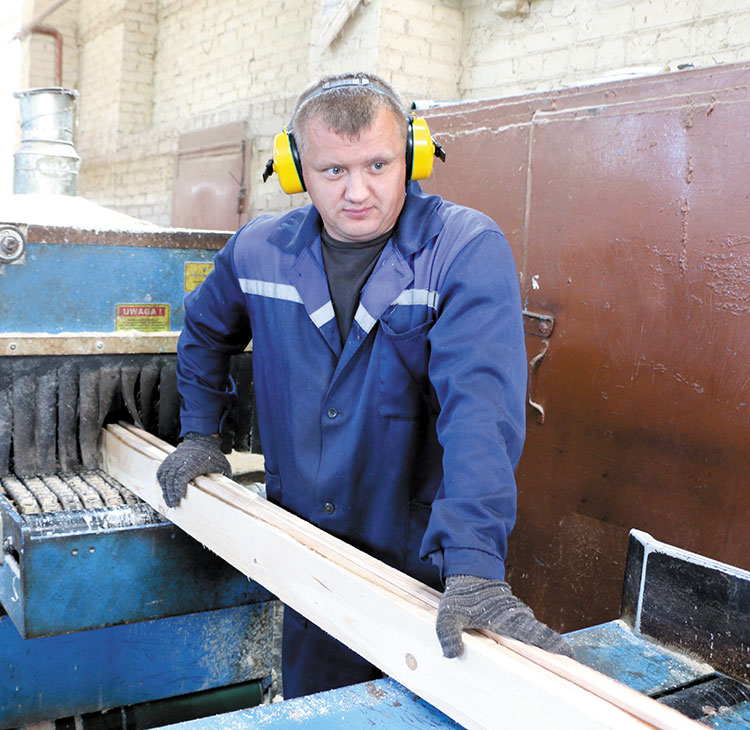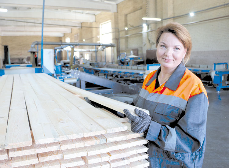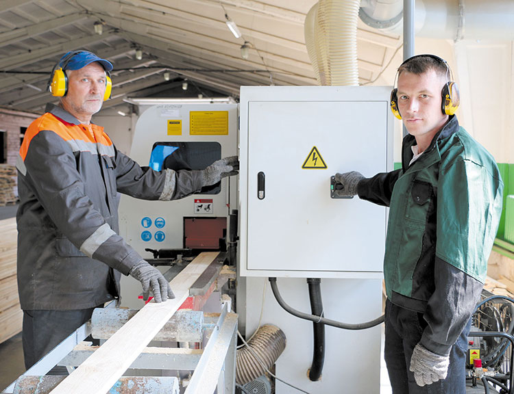 Николай Антонович рассказывает, что на участке занимаются изготовлением обрезных и необрезных досок, вагонки, другой продукции из лесоматериала лесхоза (бревен хвойных и лиственных пород деревьев). Ежемесячно в среднем производят 1 700 – 1 750 кубометров продукции. Экспортные поставки составляют 75 – 85%.