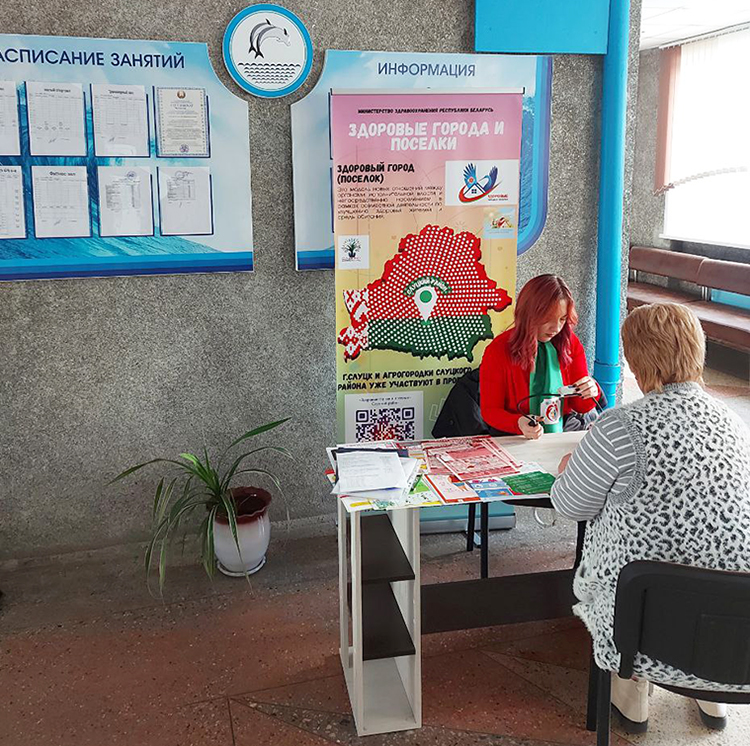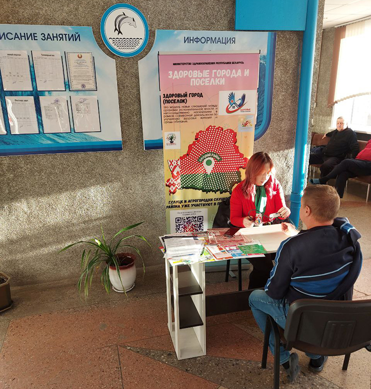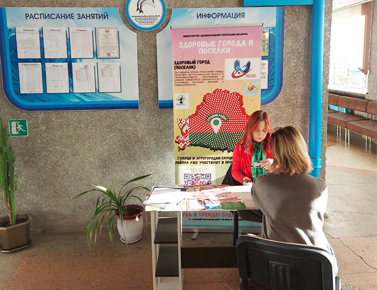 Сотрудники ГУ «Слуцкий зональный ЦГиЭ» в рамках проекта «Здоровые города и посёлки» организовали проведение районной информационно-образовательной акции по изучению поведенческих и биологических факторов риска в спорткомплексе «Дельфин» с посетителями и работниками.