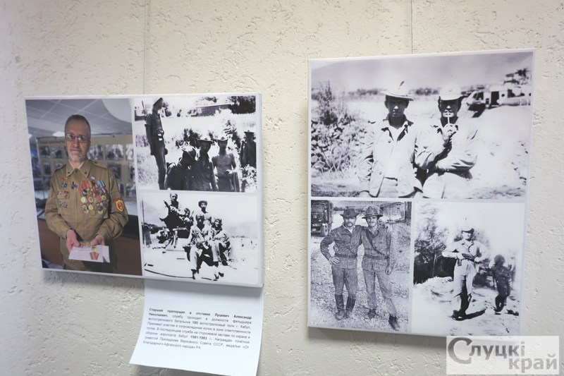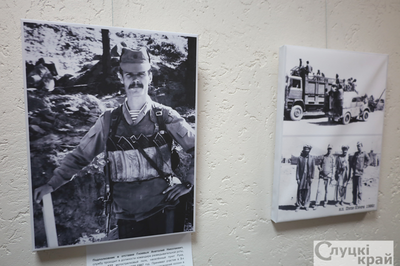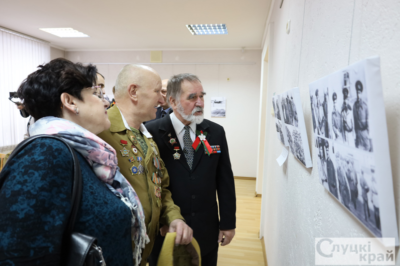 Архивные фотоматериалы слутчан, которые выполнили свой интернациональный долг в Афганистане, стали основой экспозиции в галерее искусств. На фотографиях вместе с боевыми товарищами полковник в отставке Анатолий Гноевых,  капитан в отставке Владимир Кутас,  подполковник в отставке Александр Курлович, старший прапорщик в отставке Николай Клещ,  старший прапорщик в отставке Александр Луцевич,  майор в отставке Сергей Ребрик, майор в отставке Валерий Шарупич Львович.