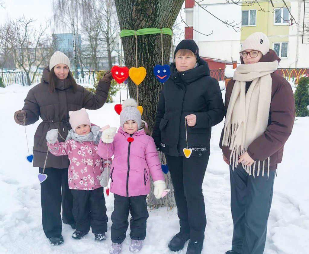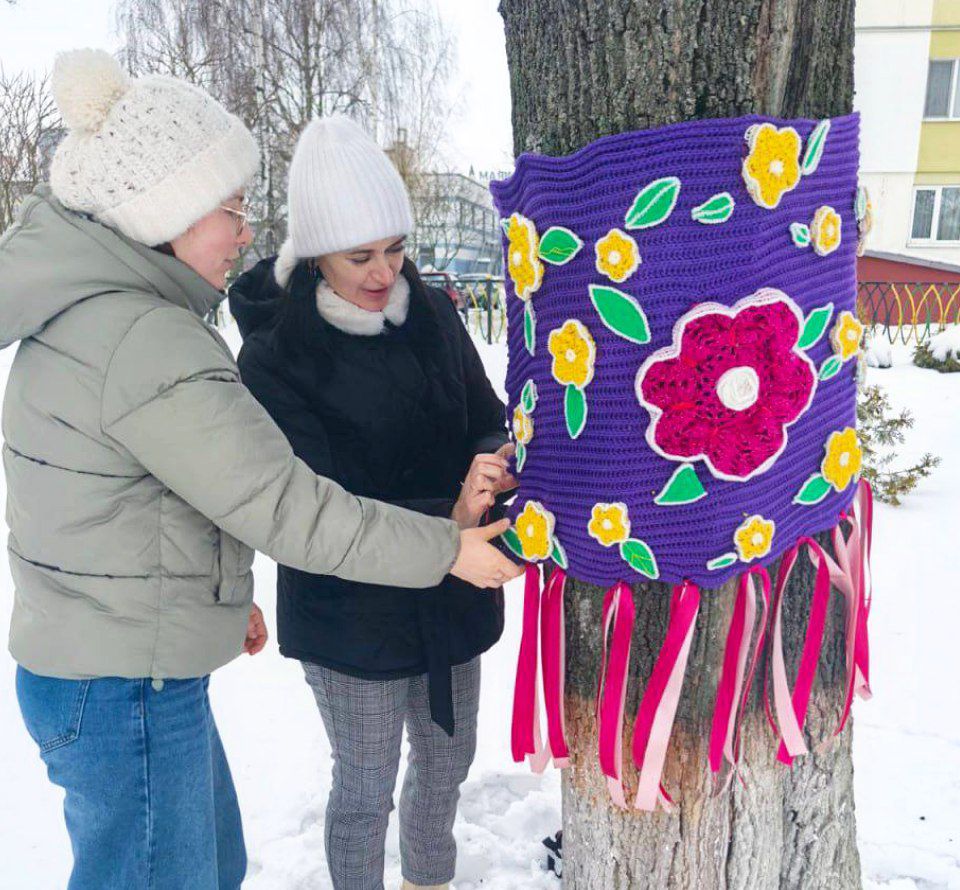 На протяжении недели педагоги и учащиеся учреждений дошкольного и общего среднего образования украшали деревья на территории центра в технике Ярмбомбинг.