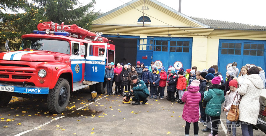 Под руководством командира отделения ПАСП №18 аг. Греск Сергея Александровича Лещенко ребята примерили боевую одежду спасателя, ознакомились с пожарной автоцистерной, произвели подачу воды из пожарного ствола, посмотрели работу аварийного спасательного оборудования. Культорганизатор Вероника Кузьмицкая провела викторину, за правильный ответ ребята были поощрены сладкими угощениями. Как отметила учитель начальных классов ГУО «Греская СШ» Лабкович Марина Николаевна: «Данные мероприятия должны быть традиционными. Детей необходимо с ранних лет приучать к соблюдению правил пожарной безопасности, дорожного движения, рассказывать, как вести себя в экстремальных ситуациях».