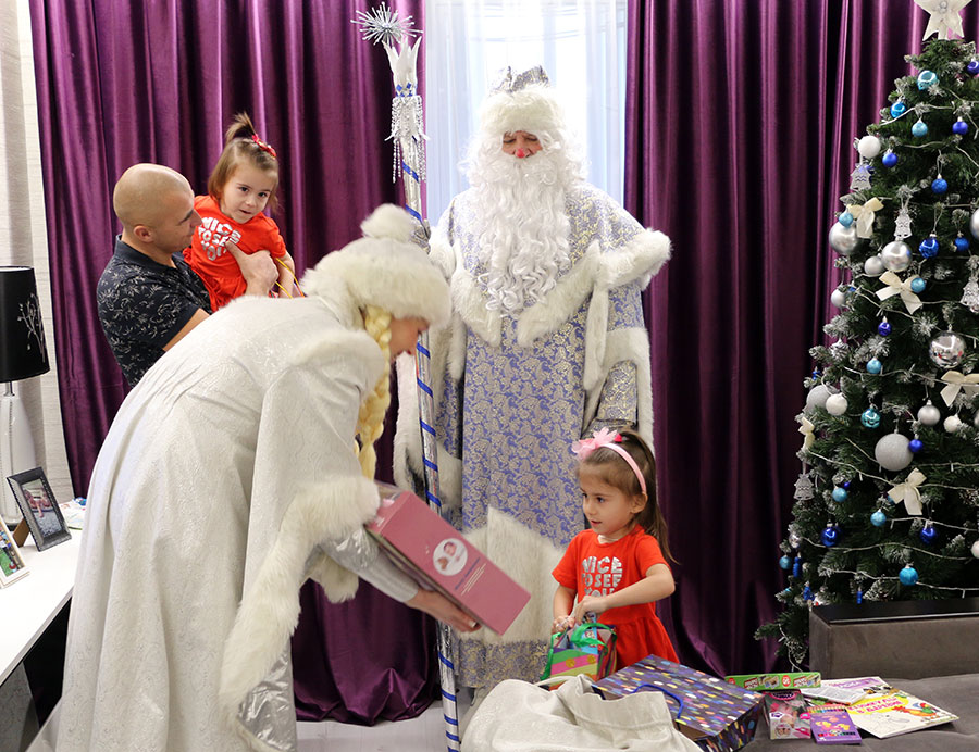 В своем письме девочка просила у Дедушки Мороза подарить ей бизиборд. Желание малышки было исполнено. В свою очередь, сестра-близнец Карины – Камилла рассказала Снегурочке новогоднее стихотворение, за что так же получила подарок от добрых волшебников. Не осталась без внимания гостей и старшая сестра девочек.