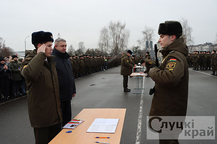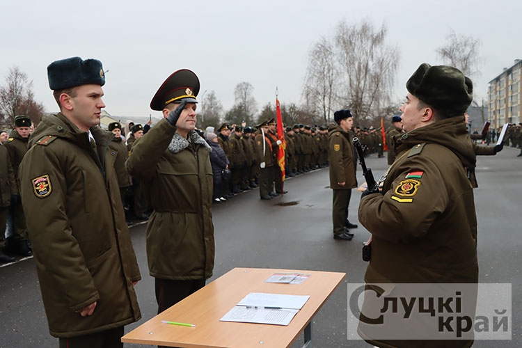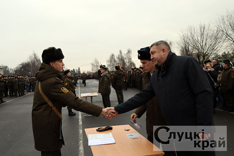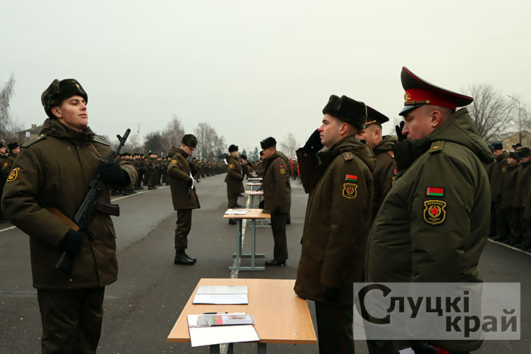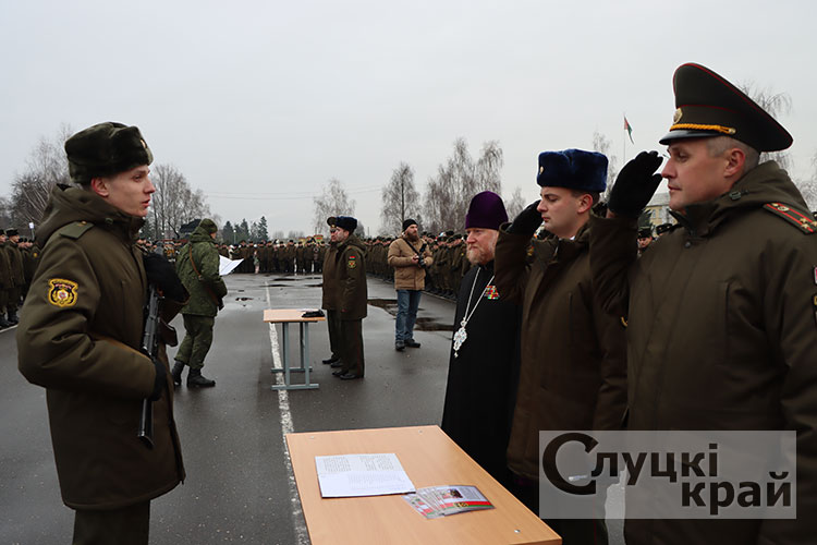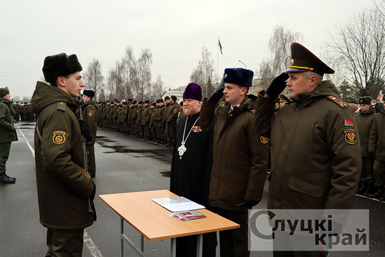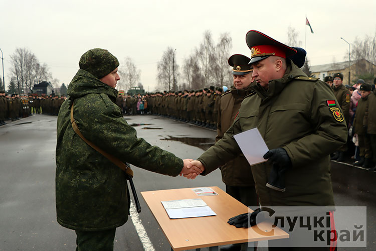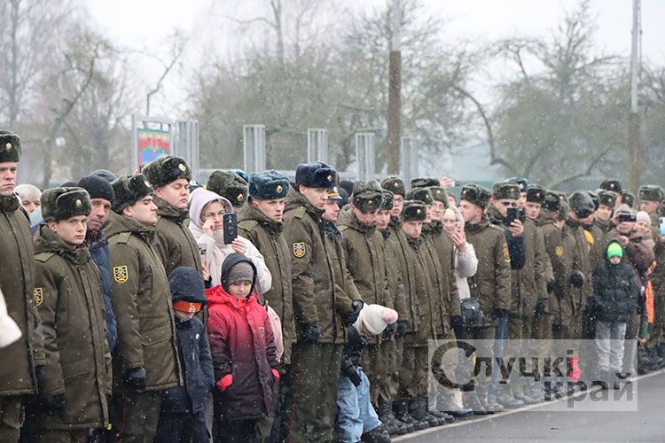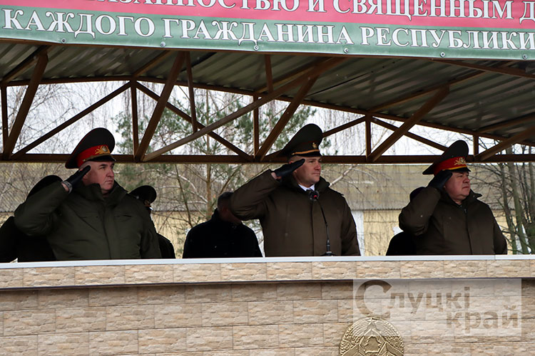 Церемония собрала в стенах части высоких гостей: заместителя Минобороны по тылу – начальника тыла Вооруженных Сил Республики Беларусь генерал-майора Андрея Бурдыко, председатель Слуцкого райисполкома Владимир Гога, военного комиссара Слуцкого и Стародорожского районов Юрия Пигулевского,. Все они пришли разделить торжество с новобранцами и их семьями.