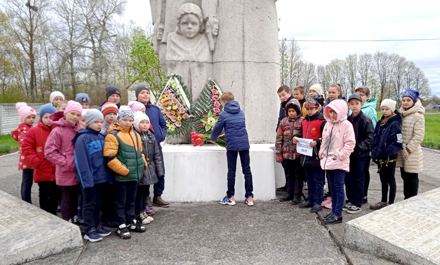 В Великосливской базовой школе торжественное открытие акции прошло в фойе школы, затем учащиеся переместились к воинскому захоронению, где возложили цветы.