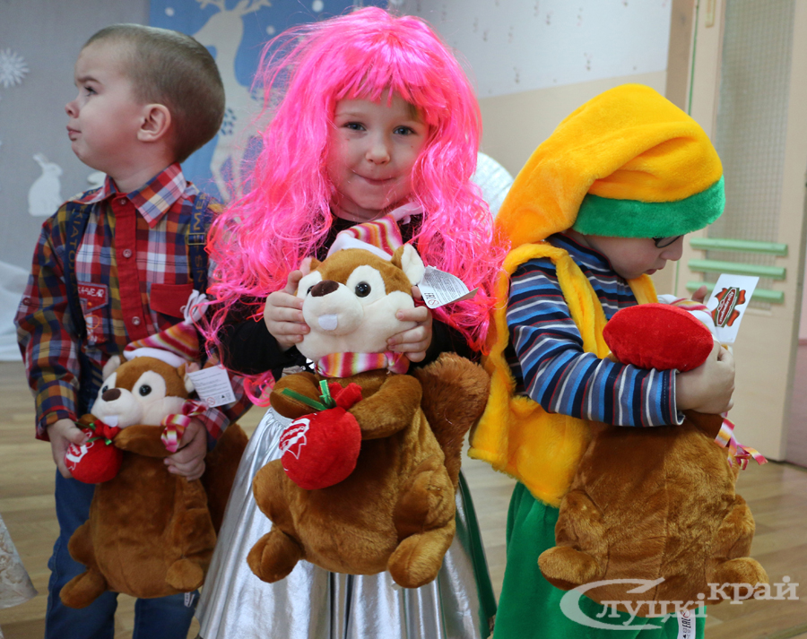 В дошкольном учреждении все готово к новогоднему празднику: сказочно украшен зал, на елочке блестят шары и дождик, и маленькие воспитанники сада в новогодних костюмах готовы поучаствовать в праздничном представлении. Но прежде – замечательные подарки от открытого акционерного общества «Весейский Покров». Директор сельхозорганизации Людмила Саванович вместе с председателем профкома Еленой Мороз вручили малышам мягкие игрушки «с секретом»: открыв замочек на спинке плюшевого бурундучка, детки получали доступ к конфетам.