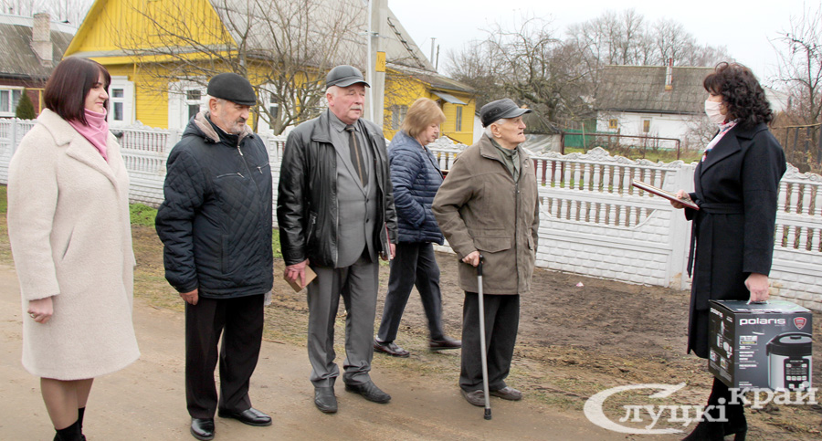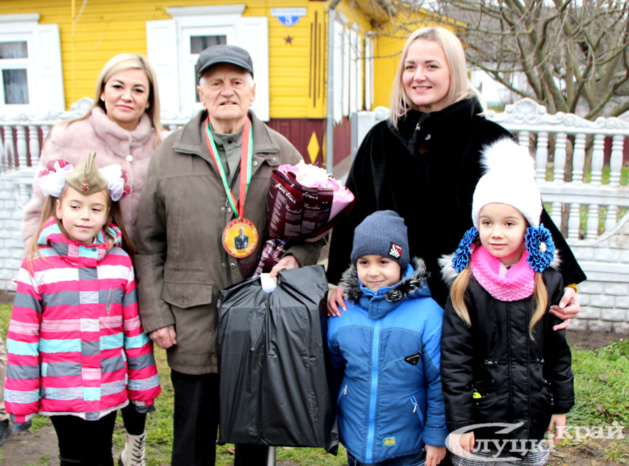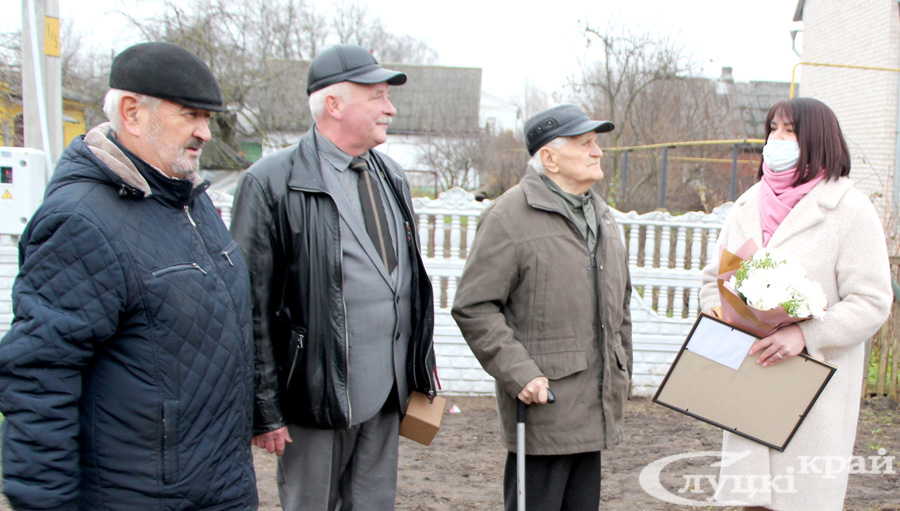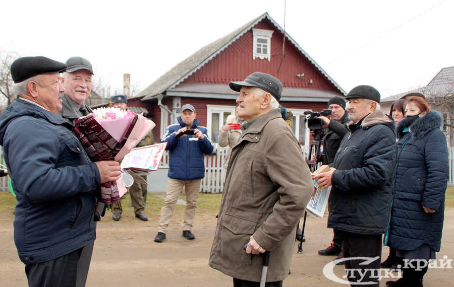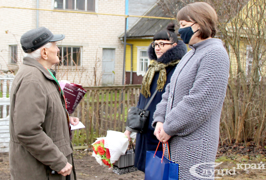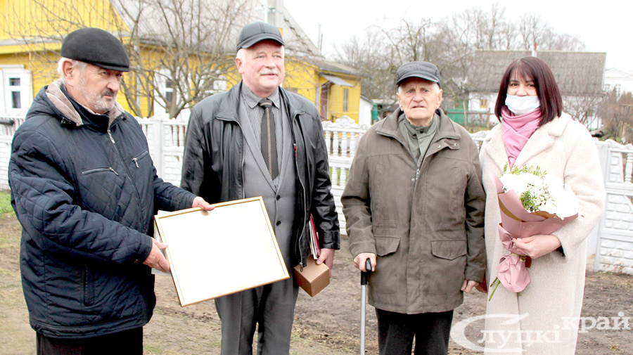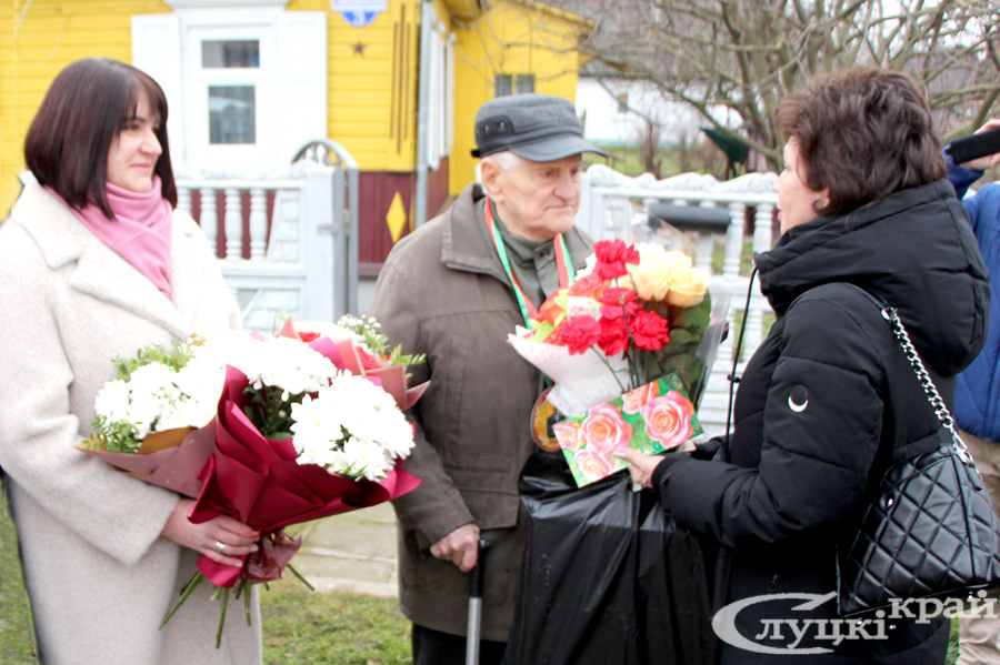 Ветерана также поздравили депутат Палаты представителей Национального собрания Республики Беларусь Валентина Ражанец, военный комиссар Слуцкого и Стародоржского районов Олег Радкевич, председатель Слуцкой районной организации ветеранов Алла Русак, председатель районной организации Белорусского союза офицеров Сергей Макаров, председатель райкома профсоюза работников образования и науки Татьяна Каханович, директор представительства Белгосстраха по Слуцкому району Инесса Клещук, представители райкома БРСМ, маленькие воспитанники детского сада №11 и другие гости. Все желали юбиляру здоровья и благополучия!