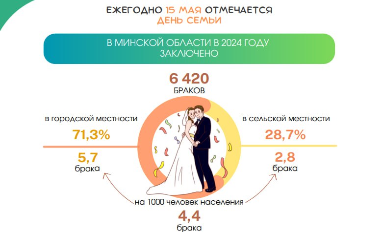 По данным Белстата, в Беларуси насчитывается более 2,6 млн семей, из которых 78,2% проживают в городах и поселках городского типа. 43,7% белорусских семей воспитывают детей до 18 лет. В основном это один ребенок (57,3%). Двое детей моложе 18 лет имеют 33,5% семей, а 9,2% – троих и более. В Слуцком районе – 1 255 многодетных семей.