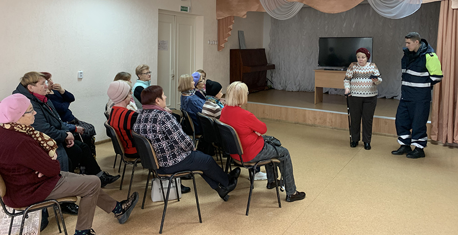 Беседа «Безопасность на дорогах. Внимание, пожилой пешеход! Гололед, гололедица» проводилась с участием инспектора ГАИ Слуцкого РОВД Никитой Боровским в рамках проведения месячника безопасности дорожного движения среди граждан пожилого возраста.