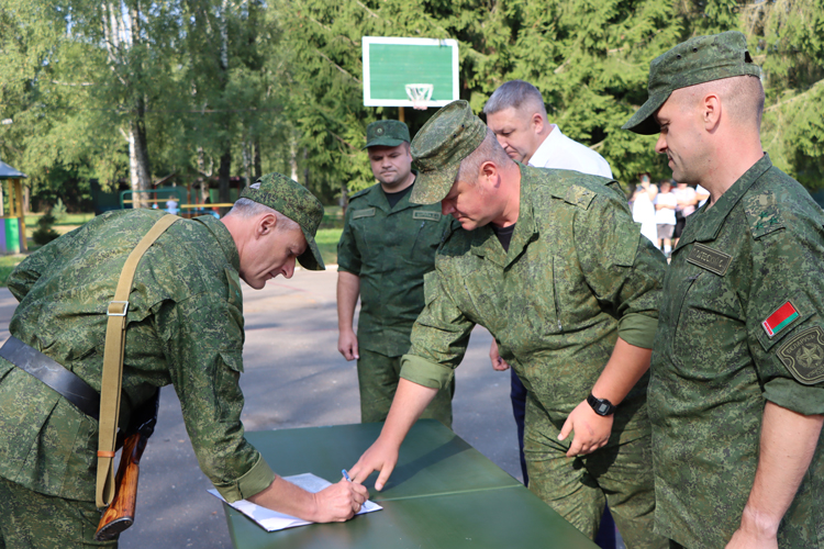 В Слуцком районе продолжаются учебные сборы с военнообязанными территориальных войск. 31 августа военнообязанные, призванные из запаса, приняли военную присягу.