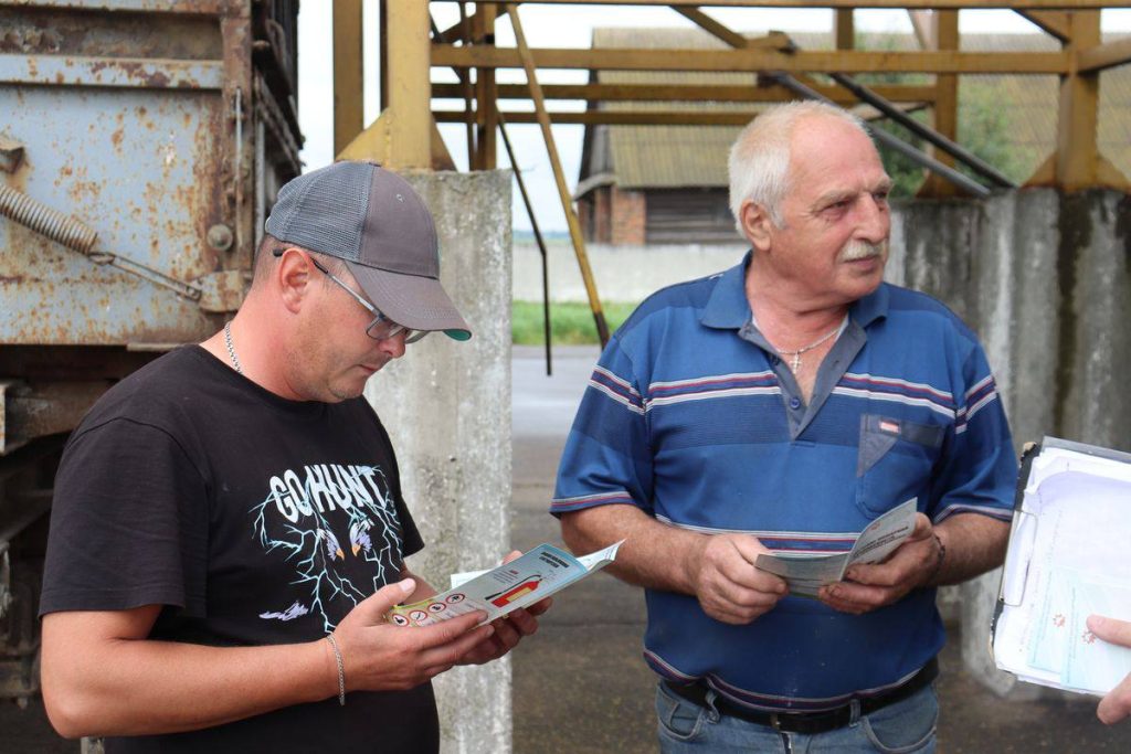 Слуцкие спасатели ежедневно проводят разъяснительную и профилактическую работу с гражданами, задействованными в уборке и переработке урожая. На протяжении всей уборочной кампании работники Слуцкого районного отдела по чрезвычайным ситуациям посещают зерносушильные комплексы, зерносклады и места уборки урожая. Спасатели особое внимание уделяют знанию персонала своих действий в случае возникновения пожара, умению пользоваться первичными средствами пожаротушения, а также соблюдению противопожарного режима.