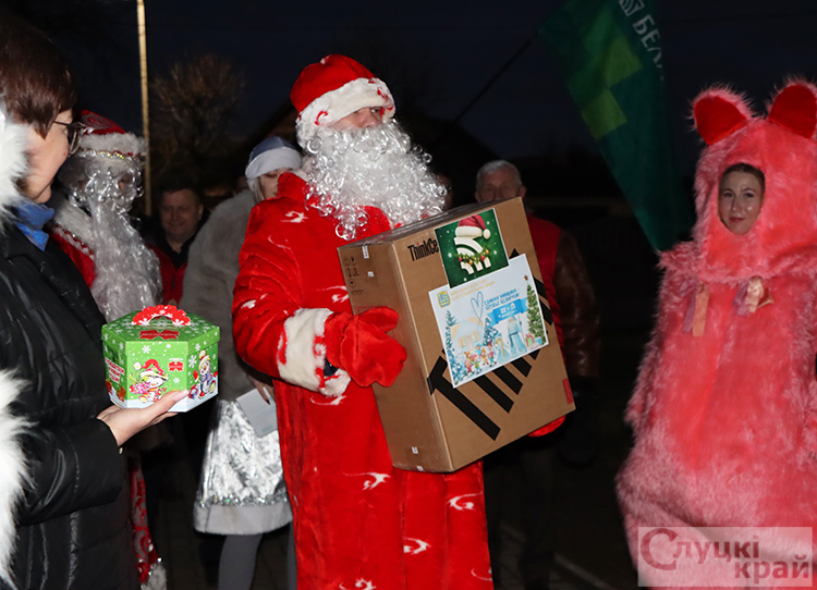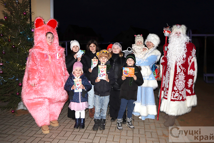 В дом семейного типа, семью Екатерина и Сергея Жирковых, в Слуцке вместе с Дедушкой Морозом и Снегурочкой пришли гости – представители ОАО «АСБ Беларусбанк», Белгосстраха, ПУ «Слуцкгаз», общественных объединений Слутчины – профсоюзных организаций, райкома БРСМ, а также районной организации КПБ.