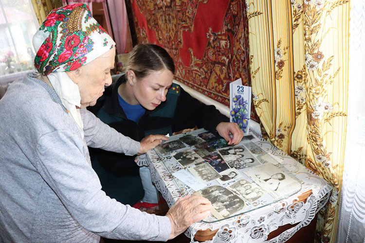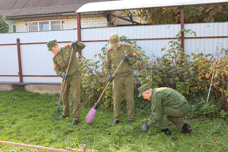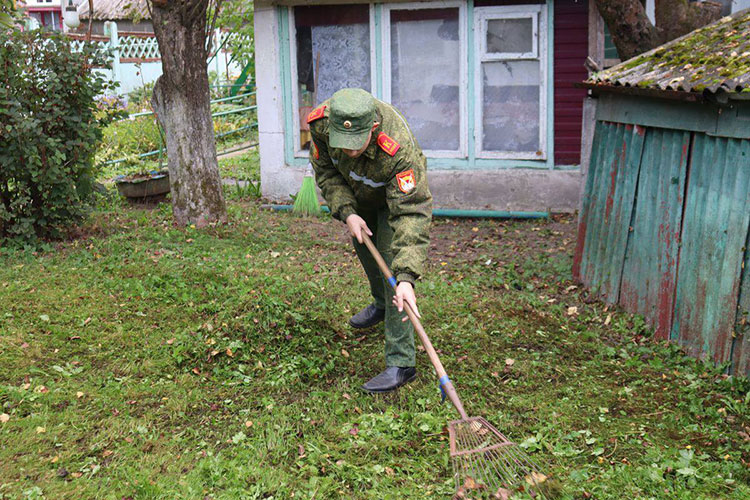 Отряд из помощников, быстро разобрав инвентарь, принялся за дело. Вместе и дружно выполнили фронт работы – скосили траву на придомовой территории, собрали листву и перекопали грядки. Обязательный пункт плана – беседа с хозяйкой о жизни и войне.