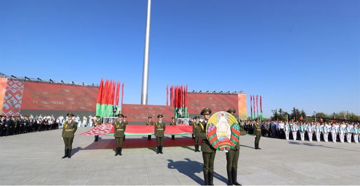 В 2013 году в Минске появилась площадь Государственного флага. Ее торжественное открытие состоялось 2 июля. Площадь расположена на пересечении проспекта Победителей и улицы Орловской. В центре ее находится 70-метровая стела-флагшток, на которой установлен самый большой в стране государственный флаг. По периметру площади размещены семь гранитных стел с гербами областей и белорусской столицы. Симметрично с двух сторон от лестницы размещаются стелы с текстом Государственного гимна и географической картой Беларуси.