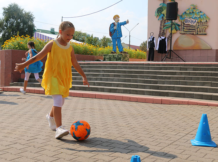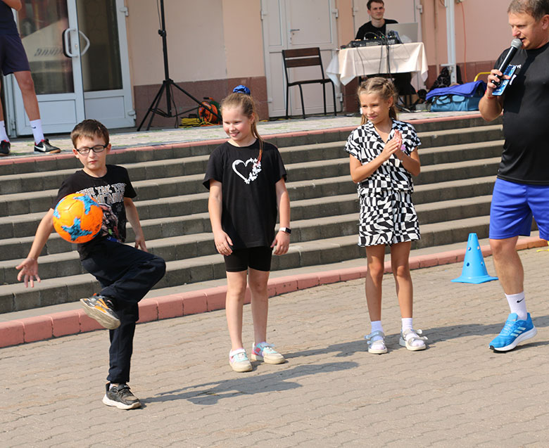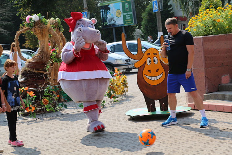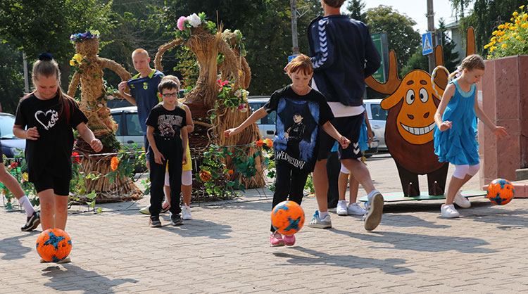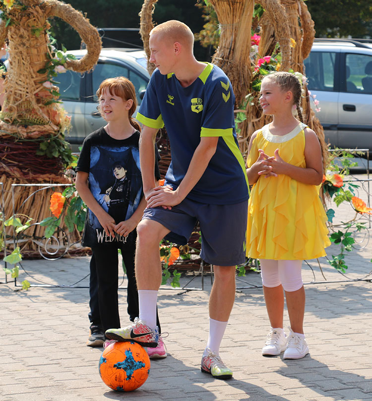 Несколько спортивных конкурсов с юными посетителями ярмарки провели воспитанники футбольного клуба «Слуцк».