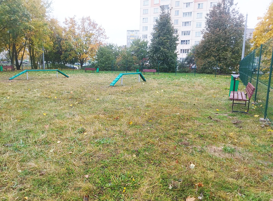 Первое, что порадовало взор на площадке, – новые тренировочные трамплины для собак и яркая табличка. На самой площадке следов жизнедеятельности животных не обнаружено, но за территорией площадки все не так хорошо. Видимо, хозяева питомцев решили, что гадить собакам вне площадки – норма.