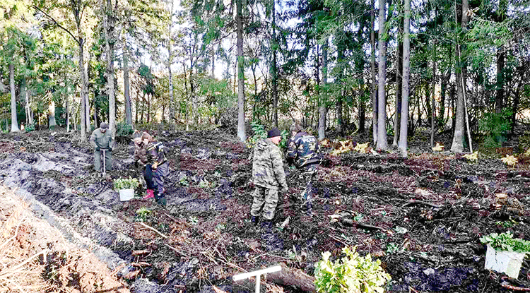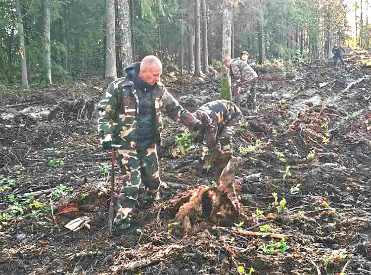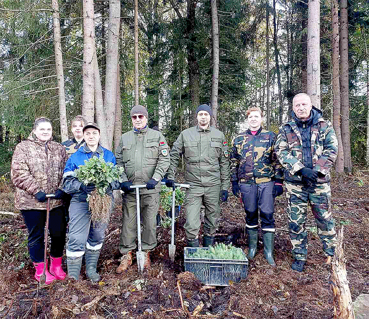 Работники Слуцкой районной инспекции природных ресурсов и охраны окружающей среды и Гольчичского лесничества Слуцкого лесхоза в Единый день озеленения занимаются посадкой сеянцев дуба и ели в лесном массиве возле деревни Новинки. Новые насаждения появятся на площади 0,8 гектара.