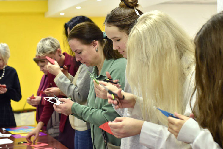 После беседы для всех собравшихся провели мастер-класс. Под руководством Игоря Калацкого каждый при помощи специальных ножниц смог попробовать создать ажурные узоры из бумаги.