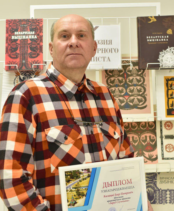 В Слуцкой районной центральной библиотеке в рамках республиканского проекта «Кожная пятніца – роднае, сваё» и краеведческого проекта «Зоркі Случчыны» прошла творческая встреча с руководителем народного коллектива мастеров народного творчества «Фантазия» Игорем Калацким «Ажурный код Слутчины».