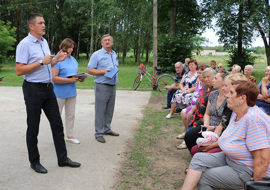 На встречу с сельчанами приехали председатель Слуцкого районного Совета депутатов Наталья Овсянникова, заместитель председателя Слуцкого райисполкома Александр Хоревич, депутат Палаты представителей Национального собрания Республики Беларусь Валентина Ражанец, руководители и специалисты Слуцкого ЖКХ, Слуцкводоканала, Слуцких электросетей, ДРСУ-125.
