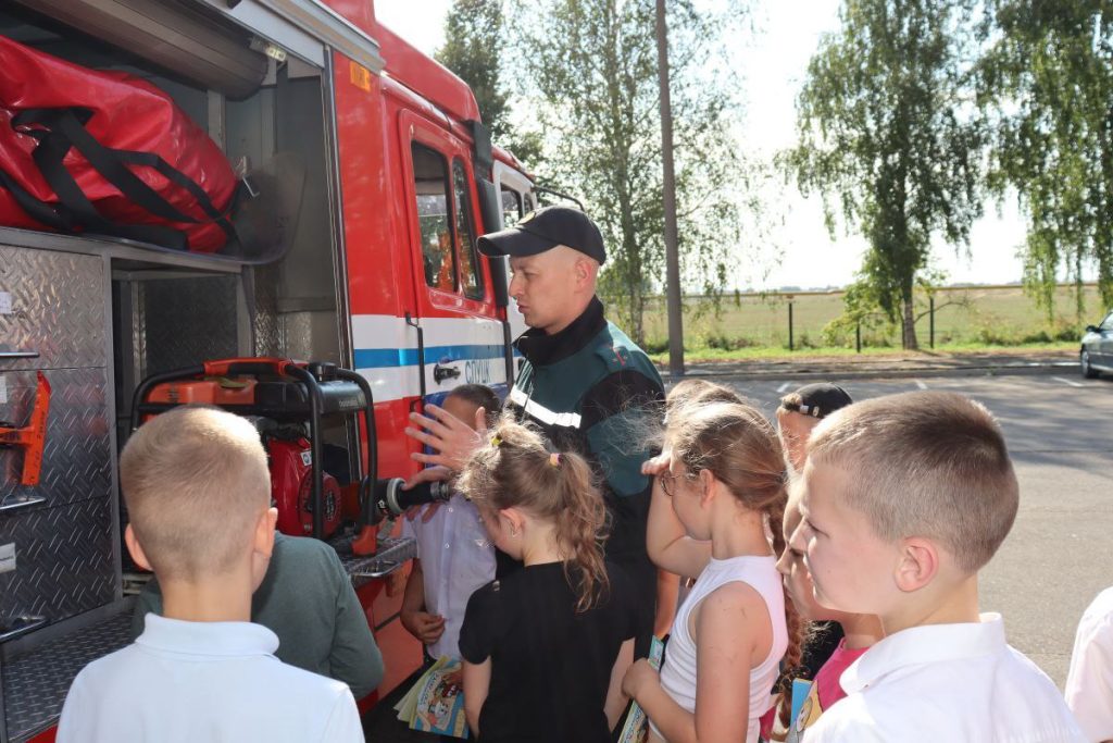 Вторая часть мероприятия включала в себя посещение пожарной аварийно-спасательной части №1 г.Слуцка. Спасатели рассказали ребятам, как устроена служба в подразделении, о быте, о спортивных достижениях работников отдела, а также о возможностях техники и вооружения, показали, как выглядит форма, снаряжение, пожарная атрибутика спасателей.