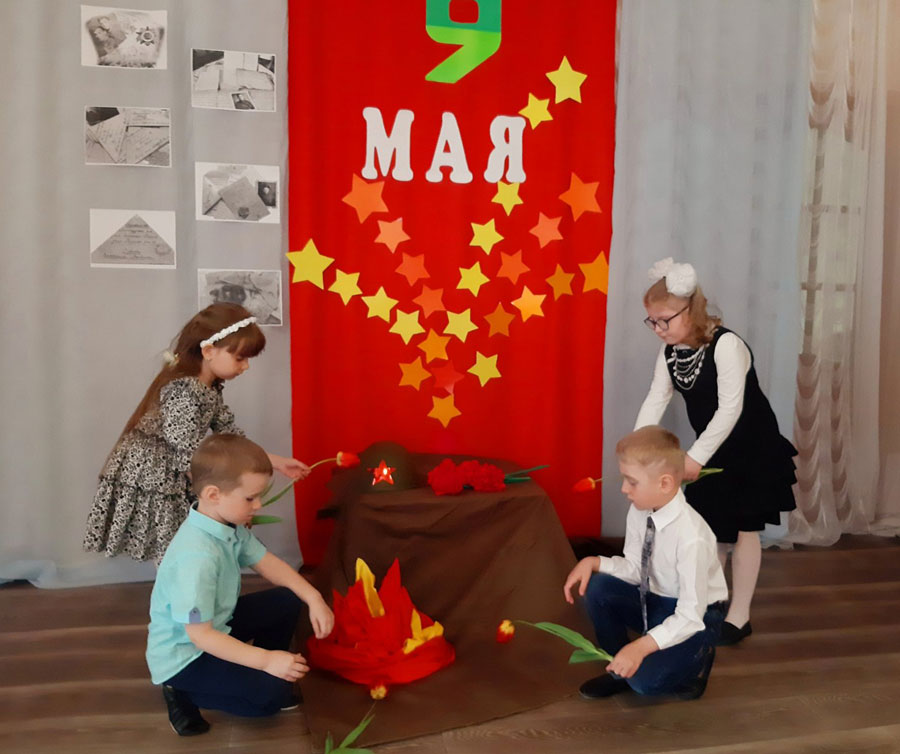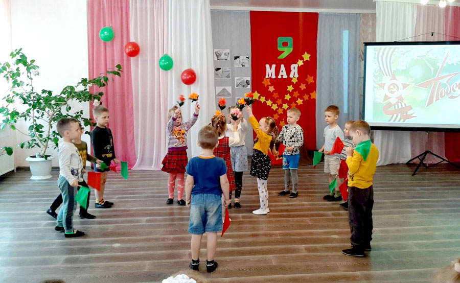 Дошколята читали стихи, пели песни о Победе, танцевали и играли. А посмотрев видеоролик «Священная война», ненадолго окунулись в те страшные военные годы.