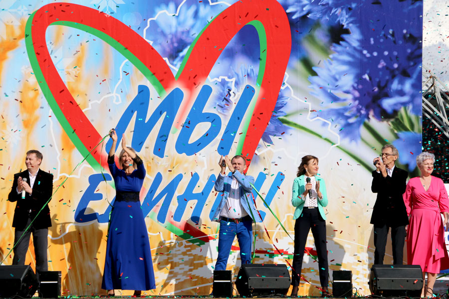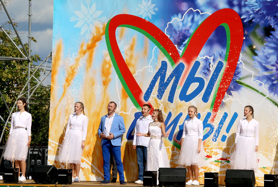 Программа завершилась сияющим на солнце фейерверком в тонах белорусской символики. С праздником, земляки!