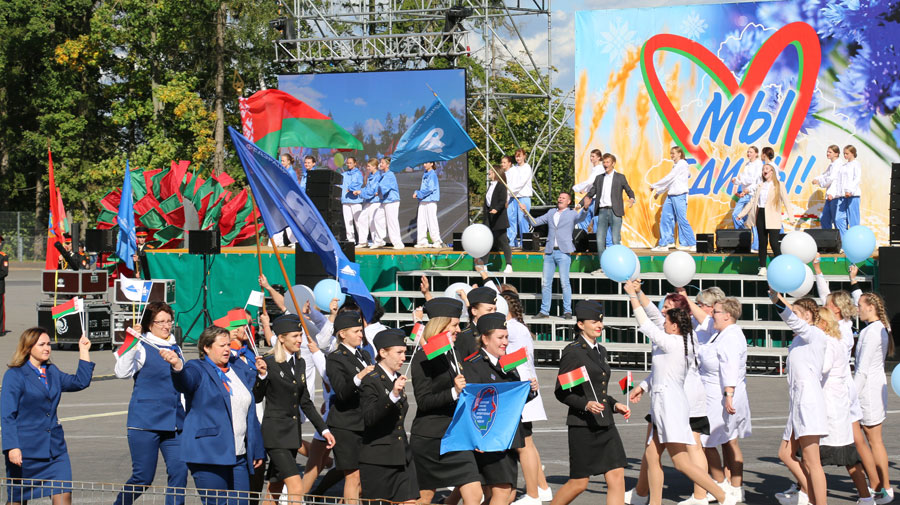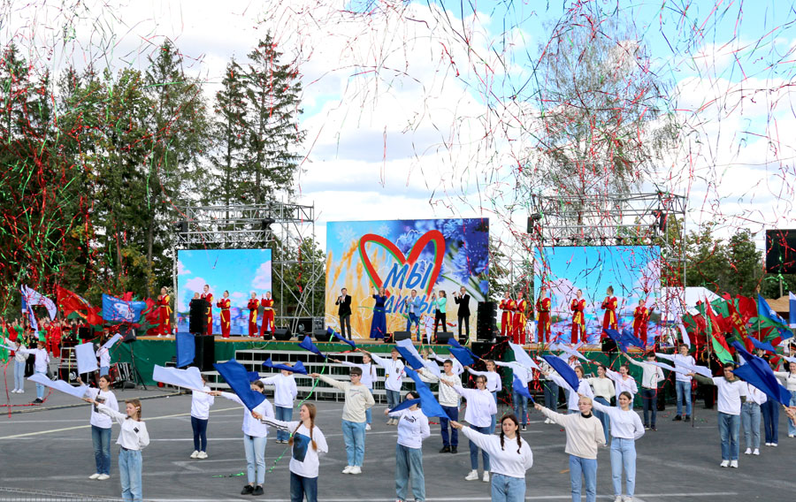 Концертная программа объединяла несколько тематических блоков через призму деятельности общественных организаций – Белорусского союза женщин, БРСМ, профсоюзов и других. Было задействовано много людей, в том числе детей и молодежи, представителей трудовых коллективов. В мероприятии приняли участие члены Молодежного парламента при Слуцком районном Совете депутатов.