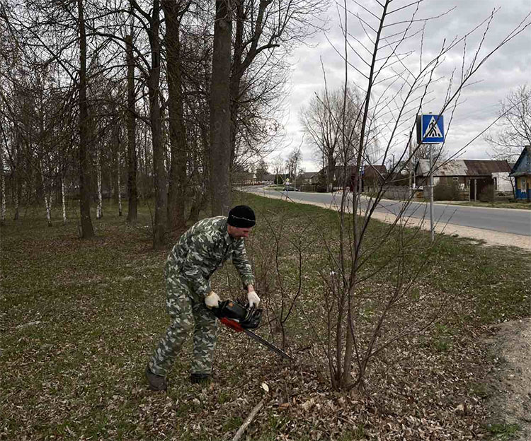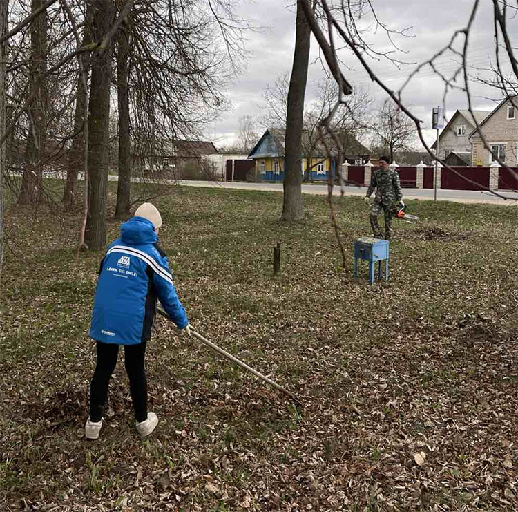 Как рассказал председатель Кировского сельисполкома Сергей Мерный, сельчане принимают участие в месячнике по наведению порядка на земле. Сегодня работники Кировского сельисполкома, педагоги и учащиеся Клепчанской базовой школы, местные жители занимались уборкой территории парка в деревне Новодворцы, удалением старых кустарников, приведением в порядок воинских захоронений.