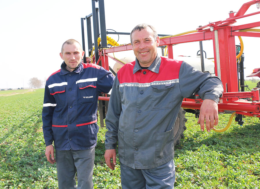 Работу в сфере ЖКХ на труд в сельской местности год назад поменял и еще один механизатор Иван Гурленя, который сейчас вместе с уже очень опытным коллегой Александром Васильевым ведет химобработку и подкормку озимого рапса.