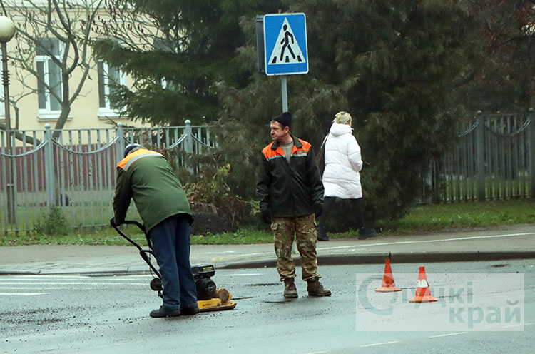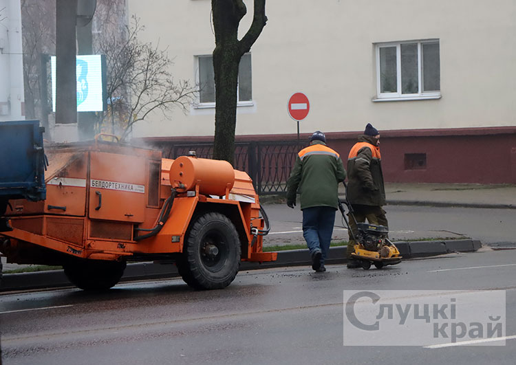 Так работниками КУП «Слуцкое ЖКХ» ведется ямочный ремонт по ул. Ленина в районе магазина «Свежий хлеб», 80‑й аптеки, на перекрестке улиц Ленина и К. Либкнехта.