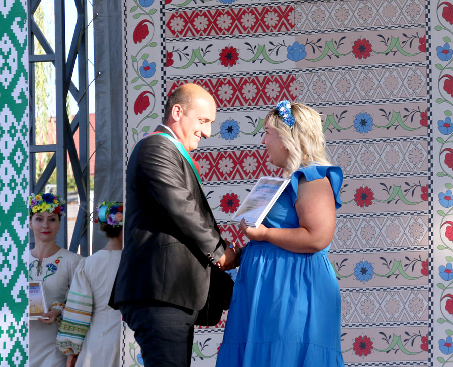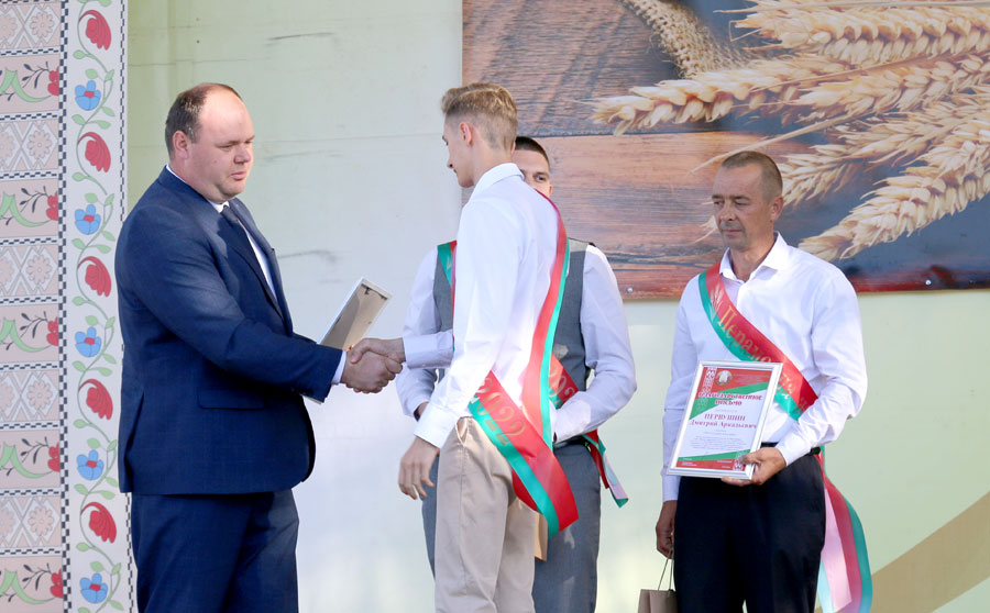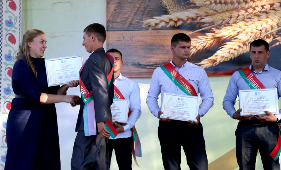 Активное участие в уборочной приняла молодежь. Первый секретарь райкома БРСМ Виктория Задёра вручила грамоты молодым участникам жатвы.