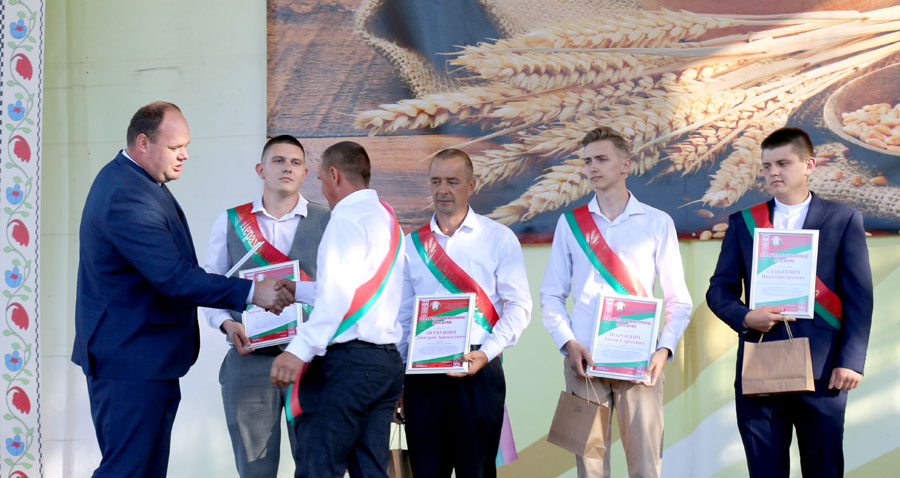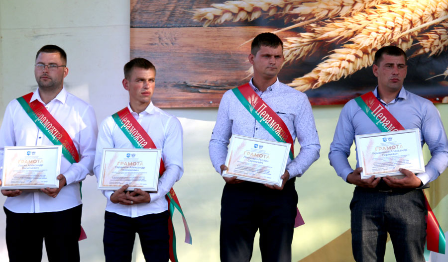 Чествовали комбайновые экипажи. Александр Скрыган и Мидюк Александр из совхоза «Рачковичи» намолотили на условный комбайн 2 986 тонн зерна; Антипцев Александр (совхоз «Рачковичи») – 2 887 тонн зерна;  Шуманский Сергей (филиал «Подсобное хозяйство «Наша Нива» ОАО «Слуцкий мясокомбинат») – 2 528 тонн зерна. Среди молодежных экипажей лучшие результаты у Клевановича Алексея (ОАО «Агрофирма Лучники»),  Березовского Родиона (ОАО «Агрофирма Лучники»), Каменева Антона (филиал «Подсобное хозяйство «Наша Нива» ОАО «Слуцкий мясокомбинат»).