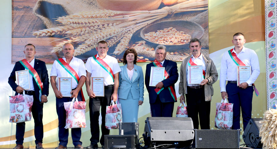 Поздравила хлеборобов района и депутат Палаты представителей Национального собрания Республики Беларусь Валентина Ражанец. Она вручила памятные подарки работникам сельхозорганизаций.
