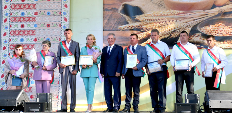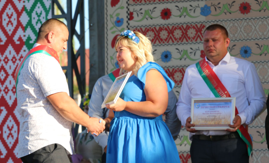 Председатель комитета по сельскому хозяйству и продовольствию Минского облисполкома Василий Сысоев поблагодарил аграриев района за достижение высоких результатов на жатве и вручил почетную грамоту комитета по сельскому хозяйству и продовольствию Минского облисполкома Людмиле Саванович, директору ОАО «Весейский Покров», Сергею Вороне,  директору филиала «Подсобное сельское хозяйство» ОАО «Слуцкий мясокомбинат», Николаю Малею, трактористу сельскохозяйственного филиала ОАО «Слуцкий сыродельный комбинат».