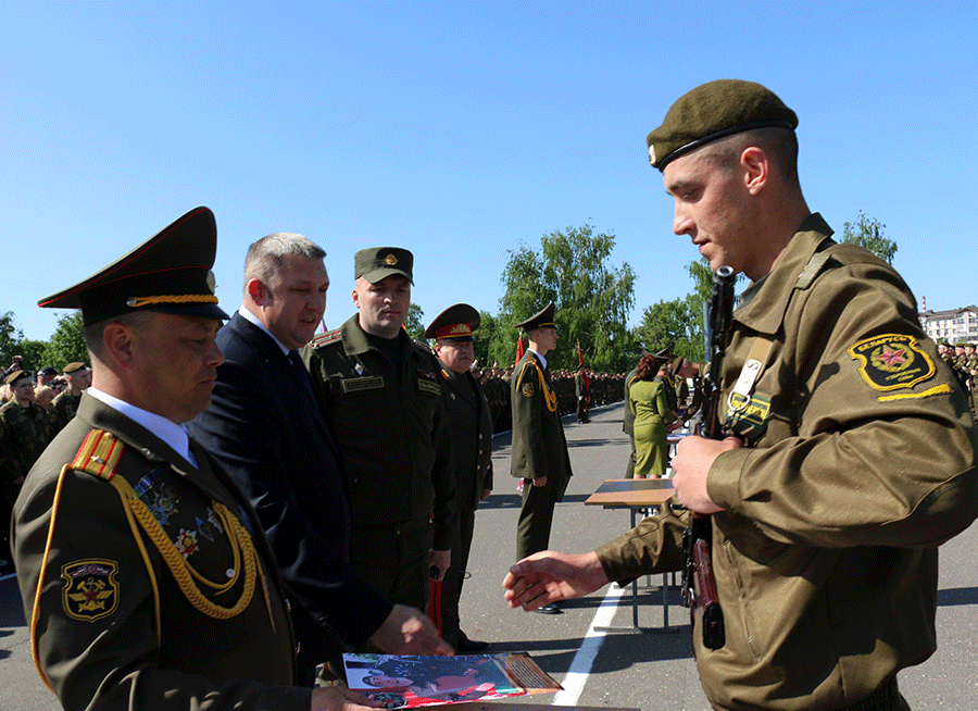 – Поздравляю вас с принятием воинской присяги, – обратился к солдатам Владимир Гога. – Сегодня вы приняли на себя обязанность защищать свободу и независимость нашей страны. Наш народ знает цену миру и бережно хранит память о героических событиях Великой Отечественной войны. Вам выпала честь продолжить славные боевые традиции. Уверен, что служба в Вооруженных Силах Республики Беларусь принесет вашим родителям не один повод для гордости.