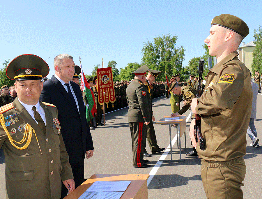 – Сегодня в Вооруженных Силах воины с оружием в руках на плацу принимают присягу на верность Родине и белорусскому народу, – обратился к новобранцам Юрий Шаплавский. – Это особый день в жизни каждого из вас, памятная страница в вашей жизни. Желаю с честью и достоинством нести высокое звание воина транспортных войск, стать достойным продолжателем славных традиций прославленного соединения.