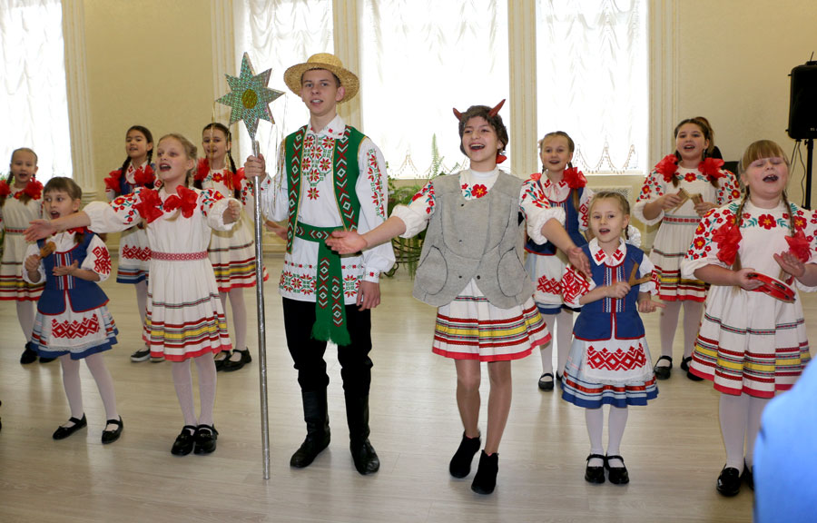 Гимназисты провели для участников мероприятия экскурсию по учреждению, а также показали народный обряд «Калядкі».