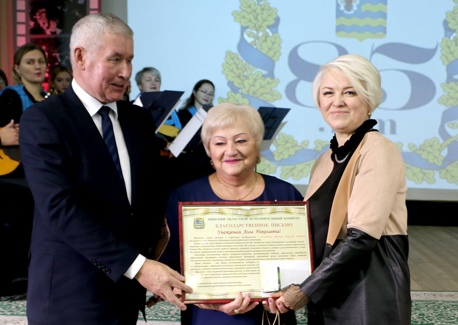 Около 90 ветеранов педагогической сферы Минщины, работников системы образования награждены на этом празднике Благодарственными письмами председателя Миноблисполкома, удостоены других наград. Отрадно отметить, что среди награжденных Благодарственными письмами наши земляки – заслуженный учитель Республики Беларусь, бывший учитель СШ №10 имени С.Ф. Рубанова Иван Павлович Лазовский, бывший начальник отдела образования Слуцкого райисполкома Иван Антонович Дерман, бывший заместитель директора Слуцкого государственного колледжа Алла Николаевна Матусевич, бывший заместитель директора СШ №8 Светлана Альбертовна Шумицкая.