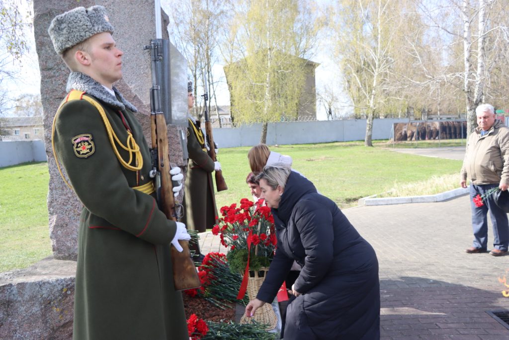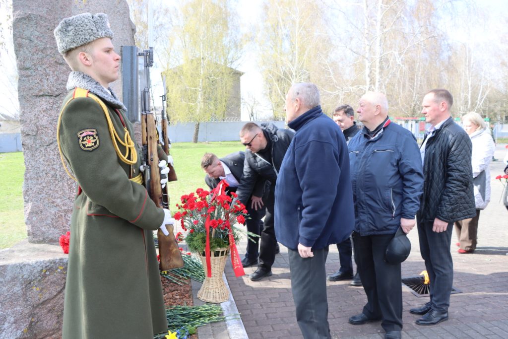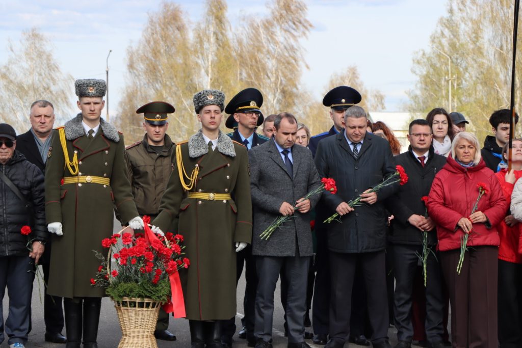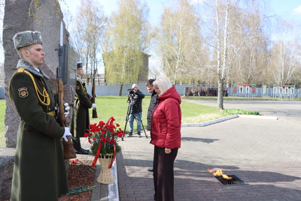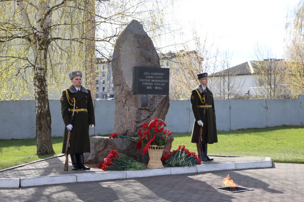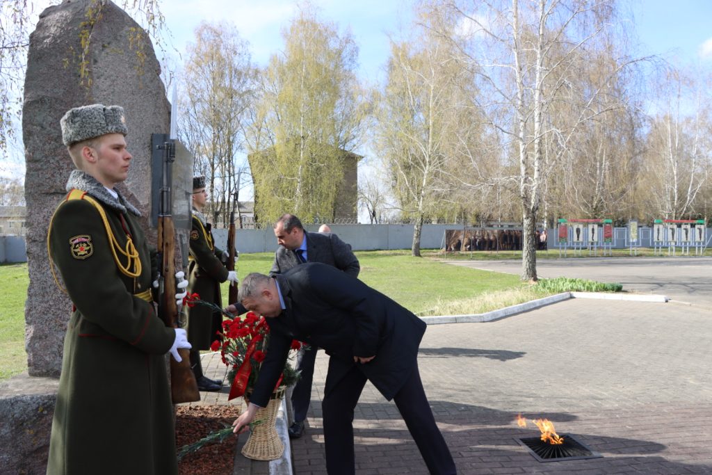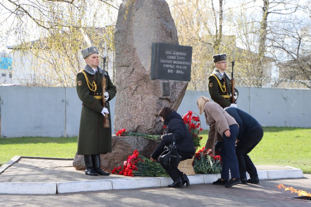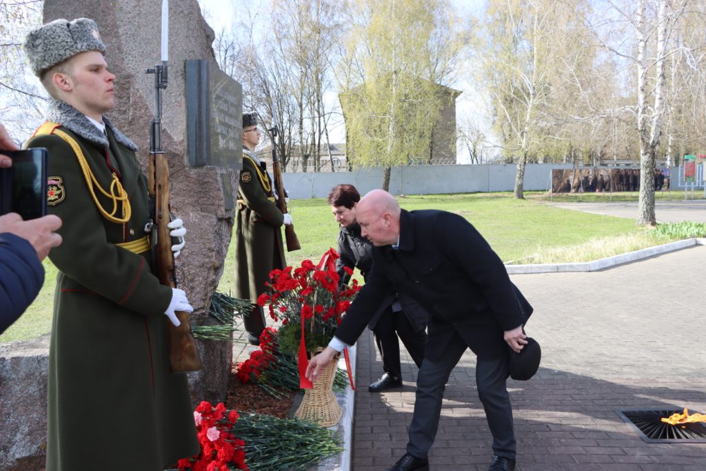 Торжественное мероприятие, посвященное Международному дню освобождения узников фашистских концлагерей, прошло возле памятного знака узникам лагеря советских военнопленных и мирных граждан на территории 30-й отдельной железнодорожной бригады.