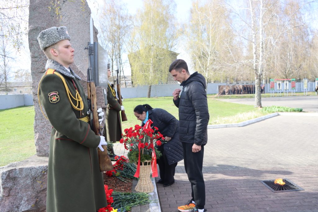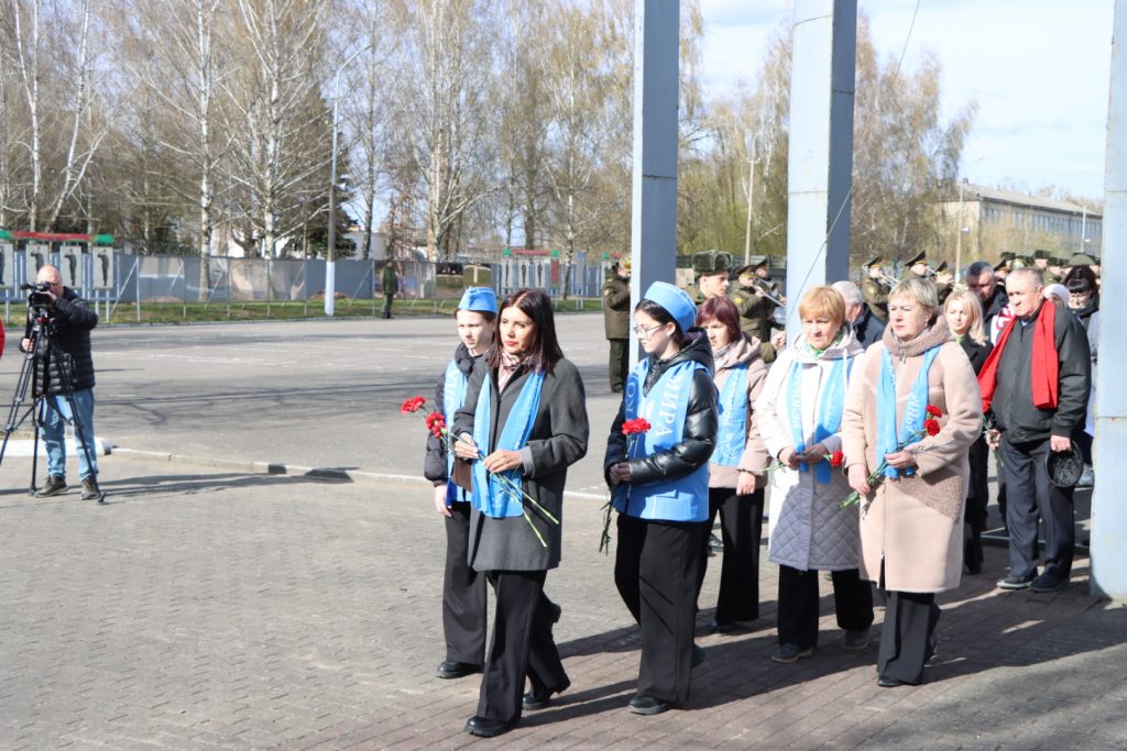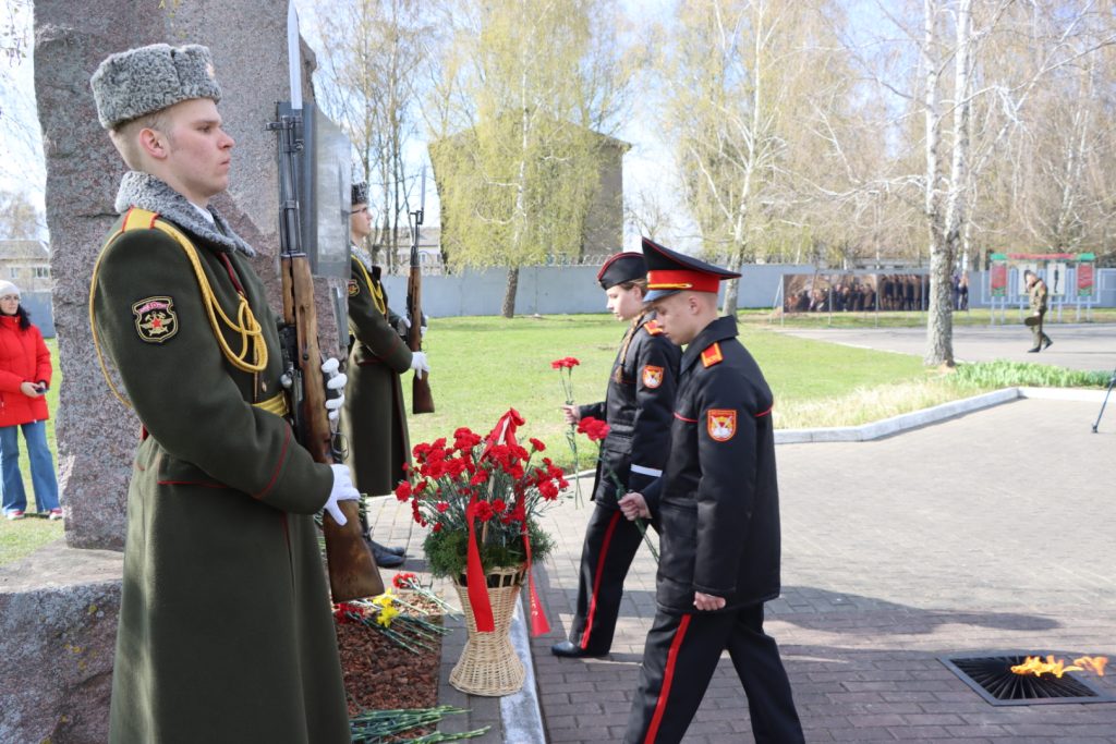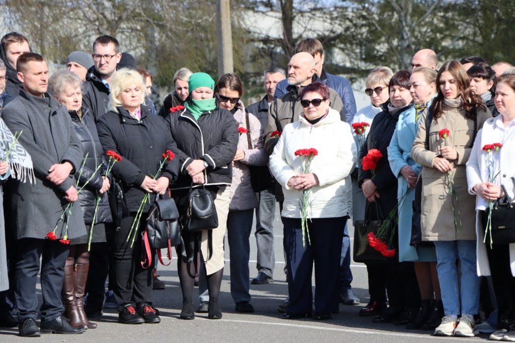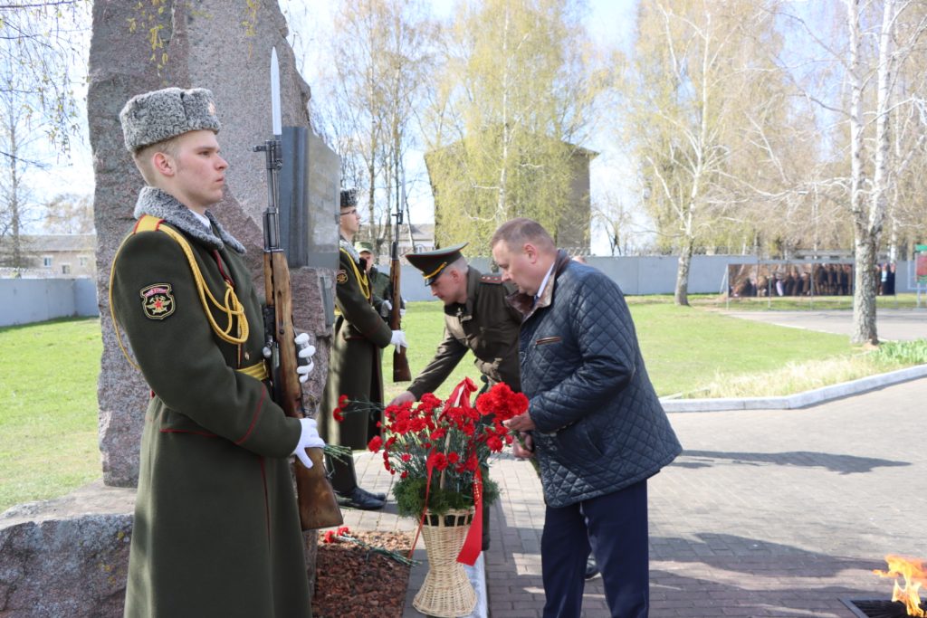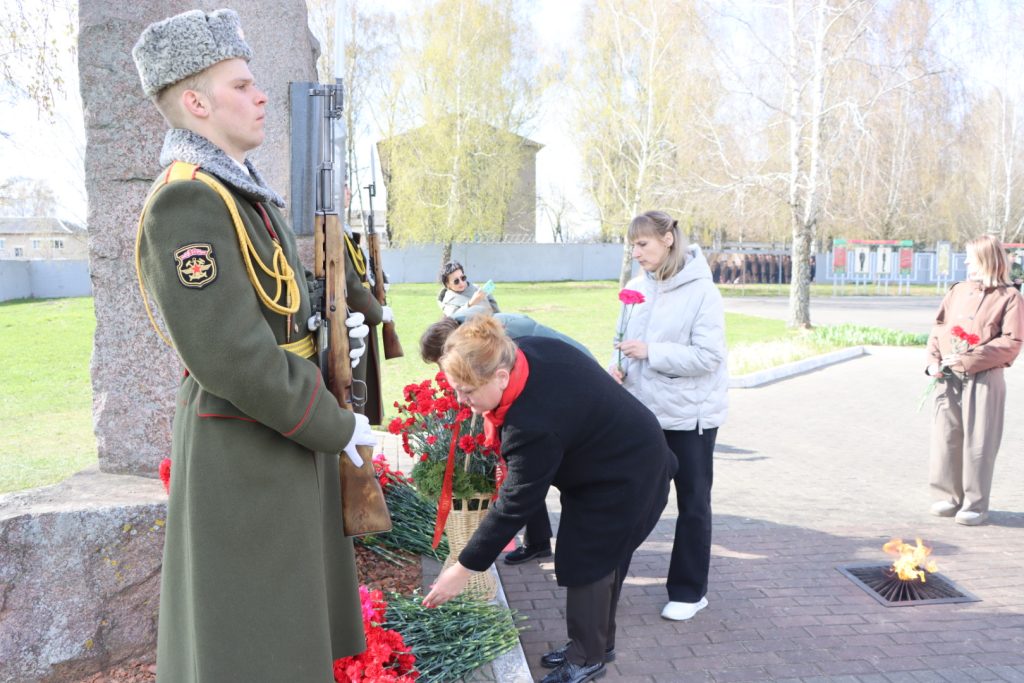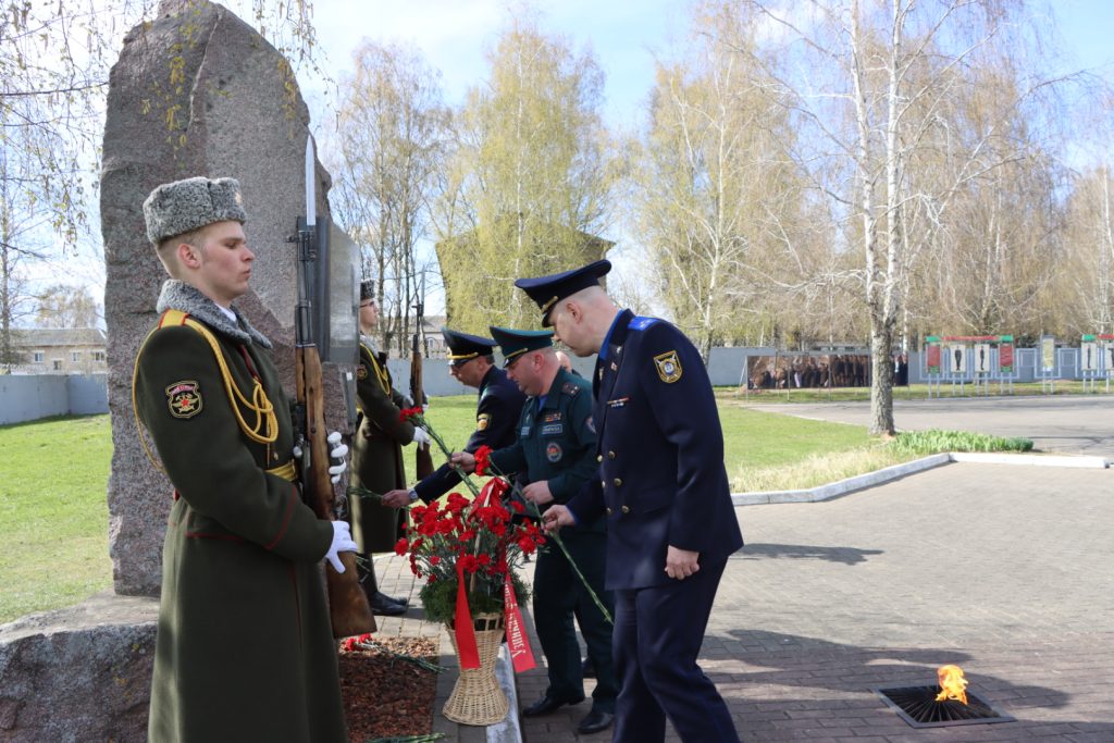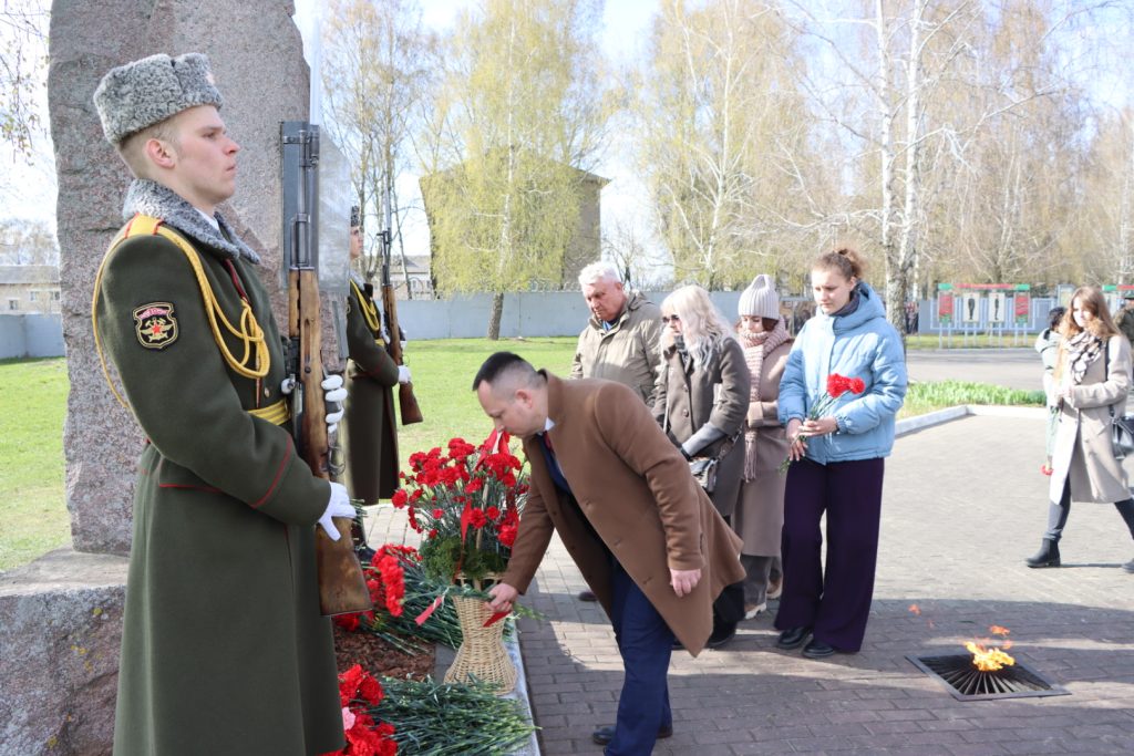 Торжественное мероприятие, посвященное Международному дню освобождения узников фашистских концлагерей, прошло возле памятного знака узникам лагеря советских военнопленных и мирных граждан на территории 30-й отдельной железнодорожной бригады.
