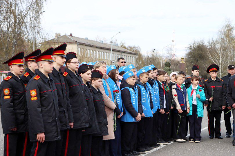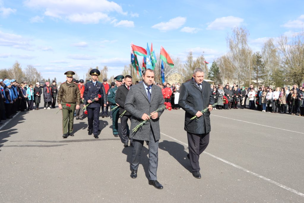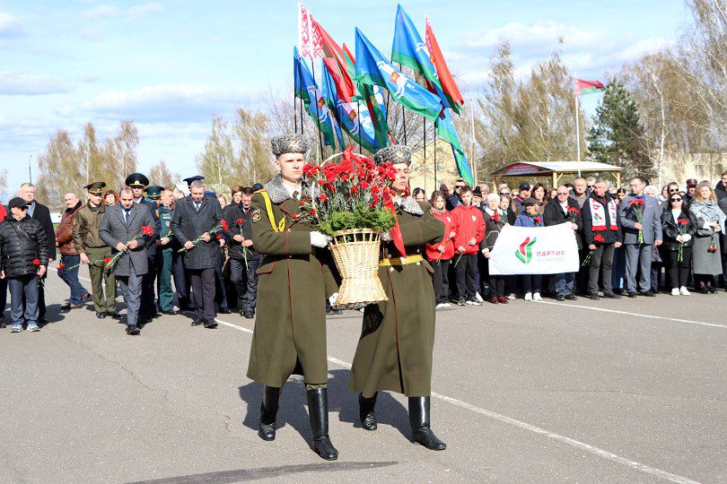 Минутой молчания почтили память погибших. К памятному знаку возложили цветы.