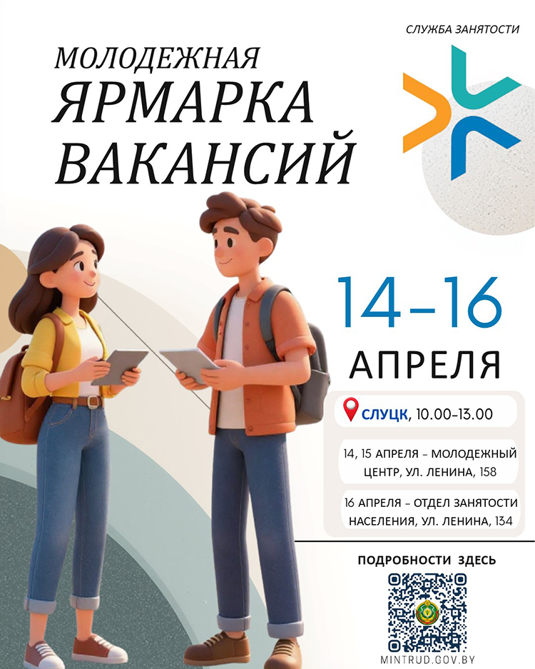 Молодежь Общество 0 min read 147 В Слуцке пройдет молодежная ярмарка вакансий СК 31 марта, 2026 0 Молодежная ярмарка вакансий пройдет с 14 по 16 апреля.
