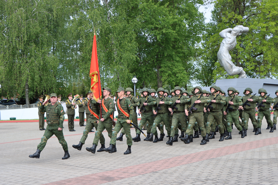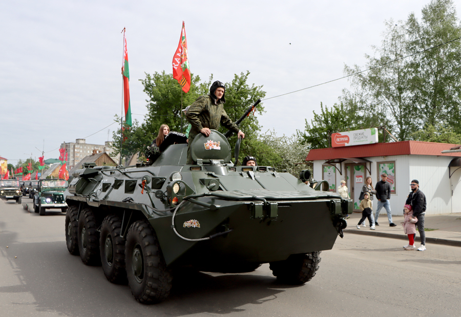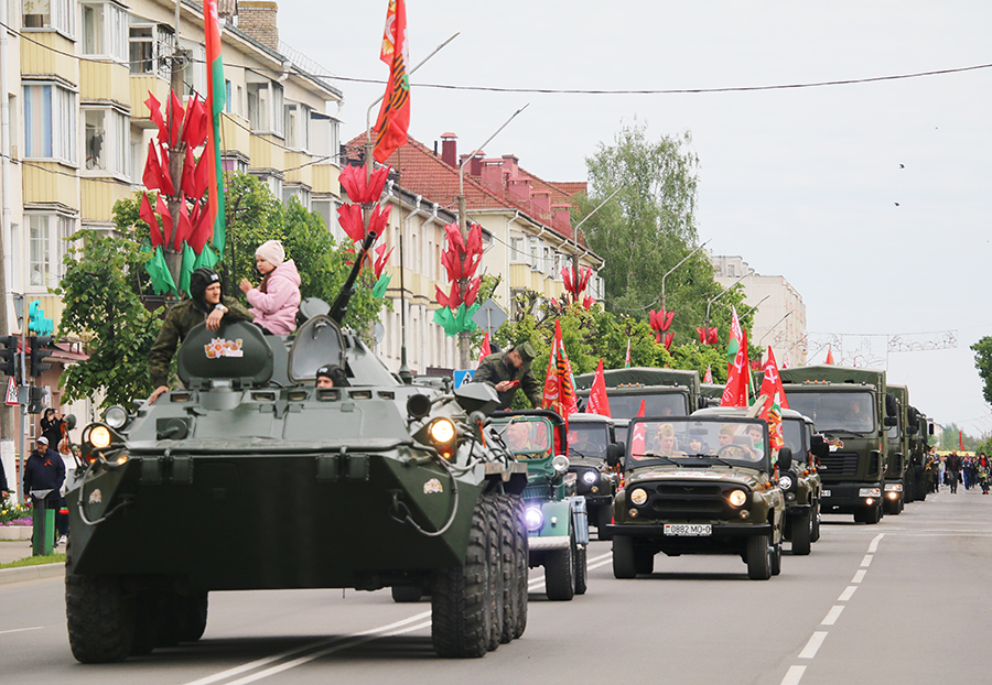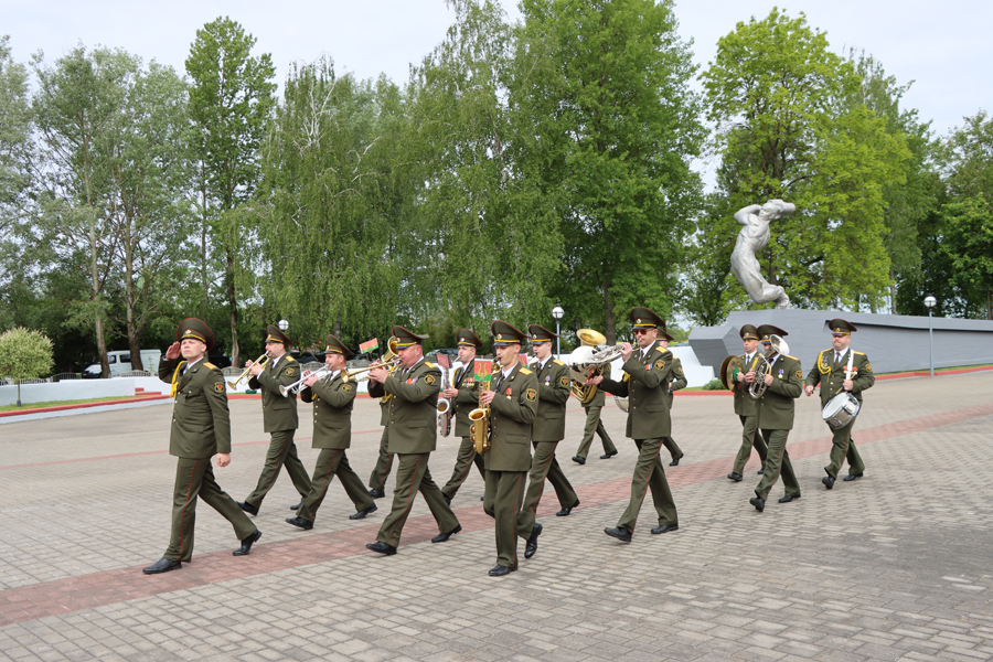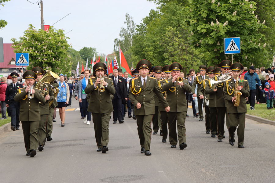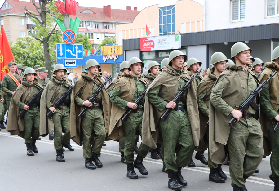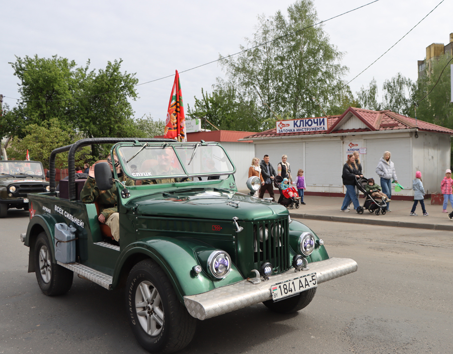 Участники митинга приняли участие в памятном шествии по улицам 14 Партизан и Ленина в сопровождении не только военного оркестра, но и военной техники 30-й отдельной железнодорожной бригады. К такому мини-параду присоединились многие жители Слуцка.