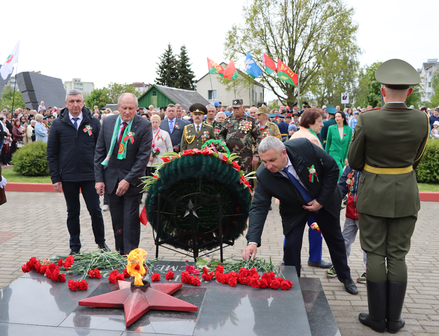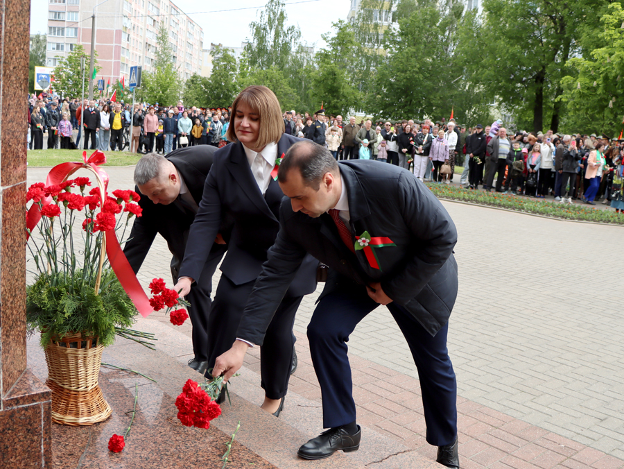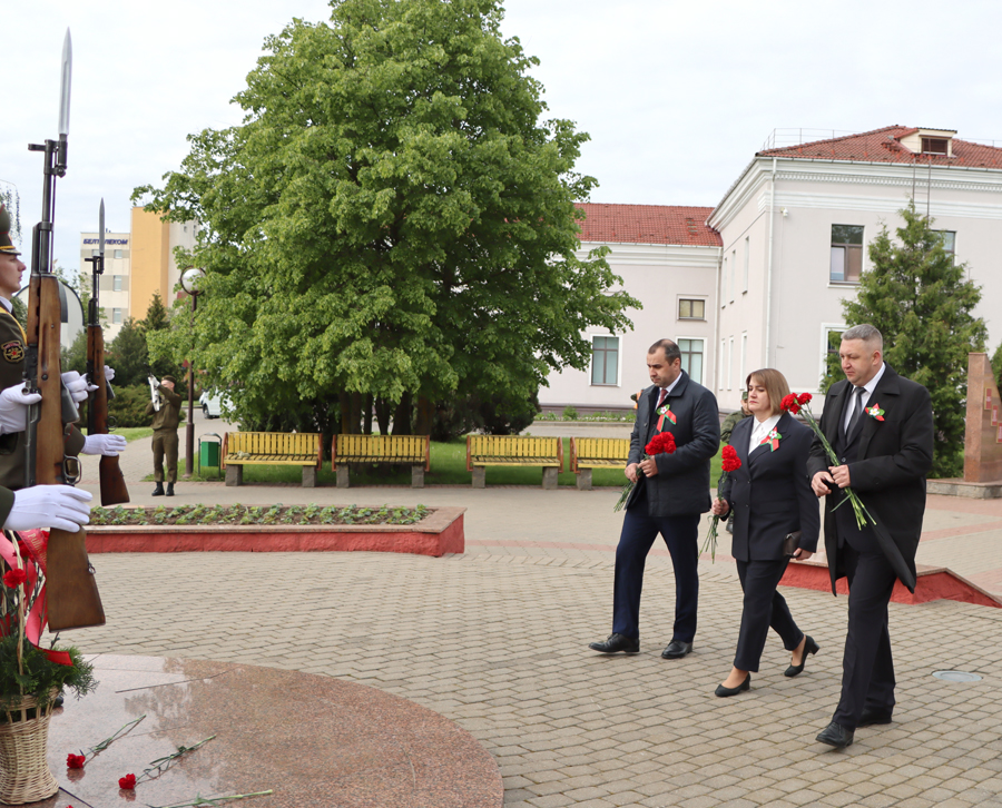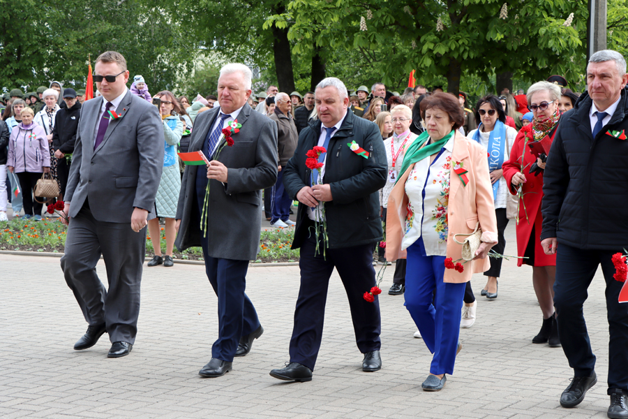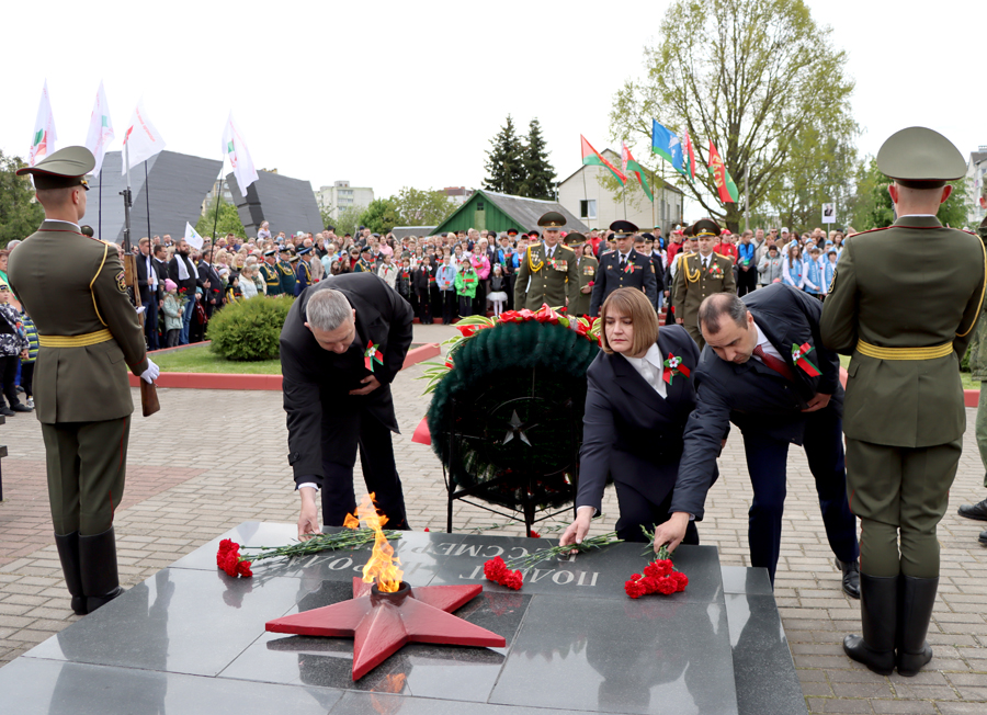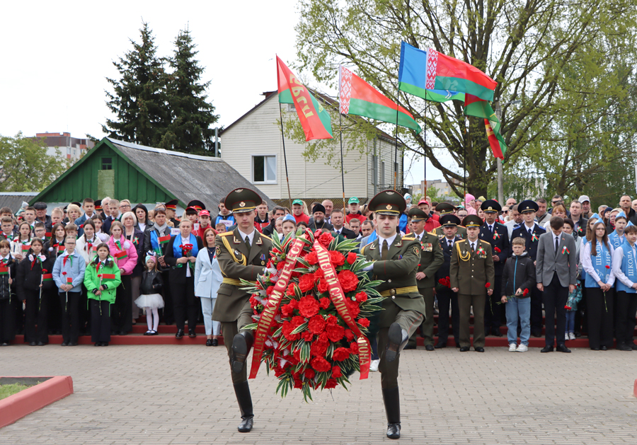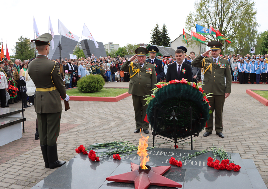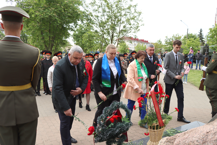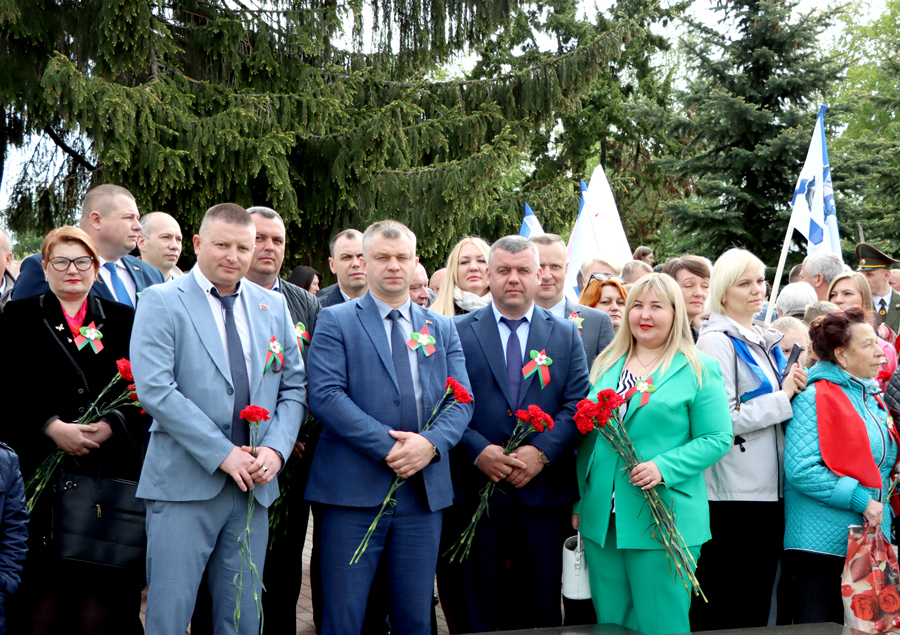 На мемориальном комплексе в Слуцке прошел торжественный митинг, посвященный Дню Победы. В нем приняли участие председатель Слуцкого райисполкома Владимир Гога, председатель Слуцкого районного Совета депутатов Александр Курак, депутат Палаты представителей Национального собрания Республики Беларусь Наталья Овсянникова, представители трудовых коллективов, общественных организаций, военнослужащие, слутчане. Минутой молчания почтили память погибших, к братским могилам возложили цветы.