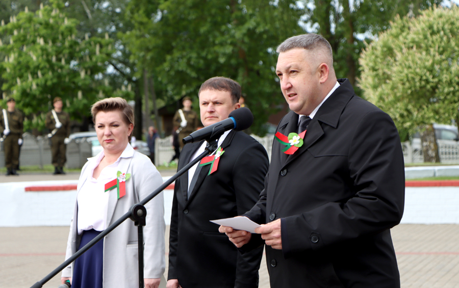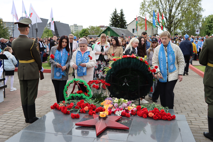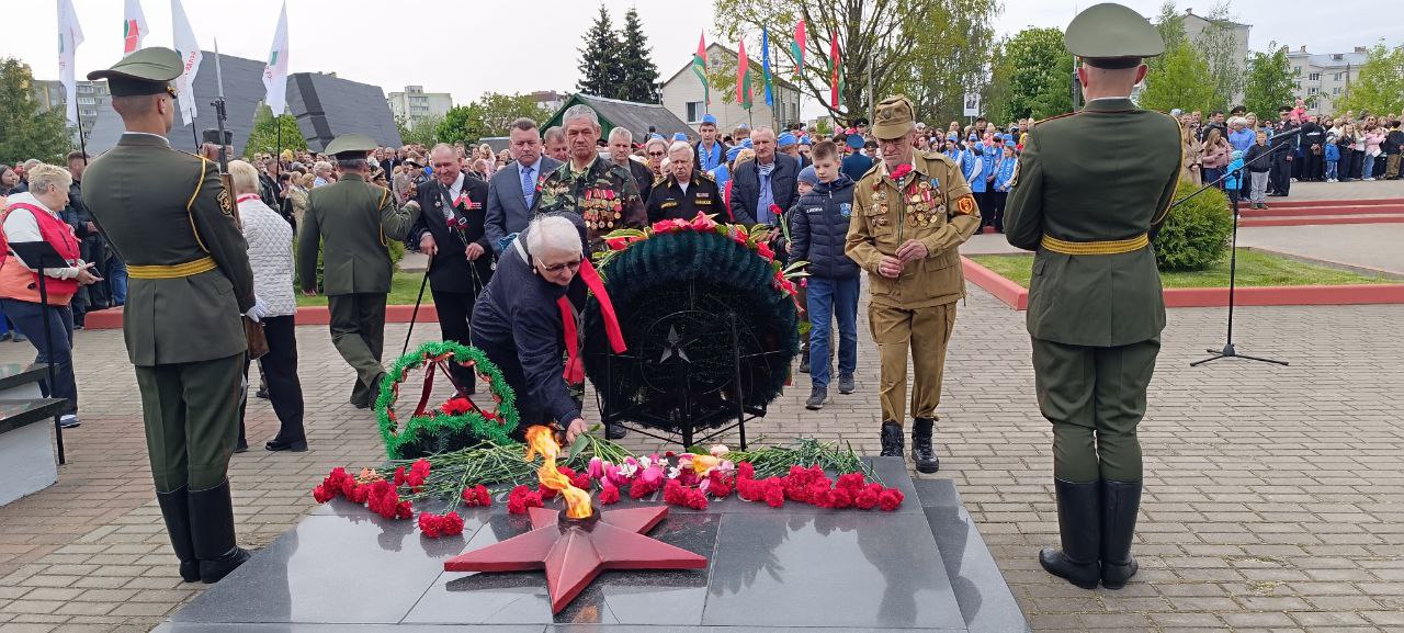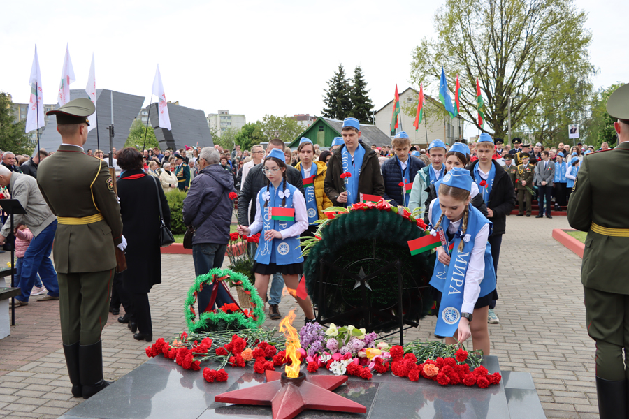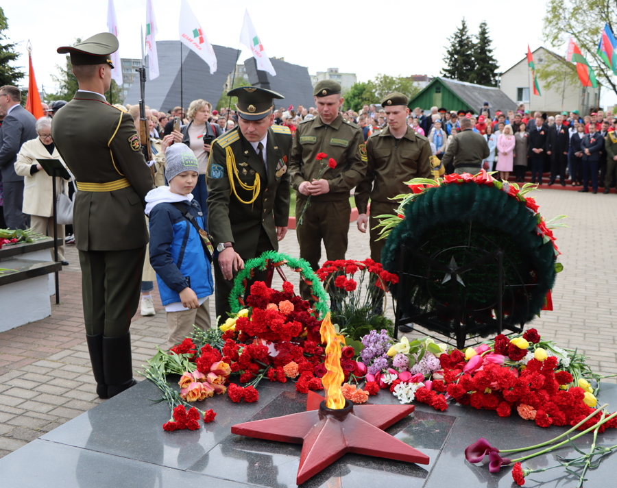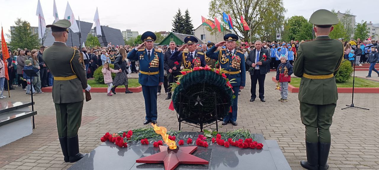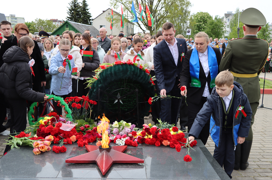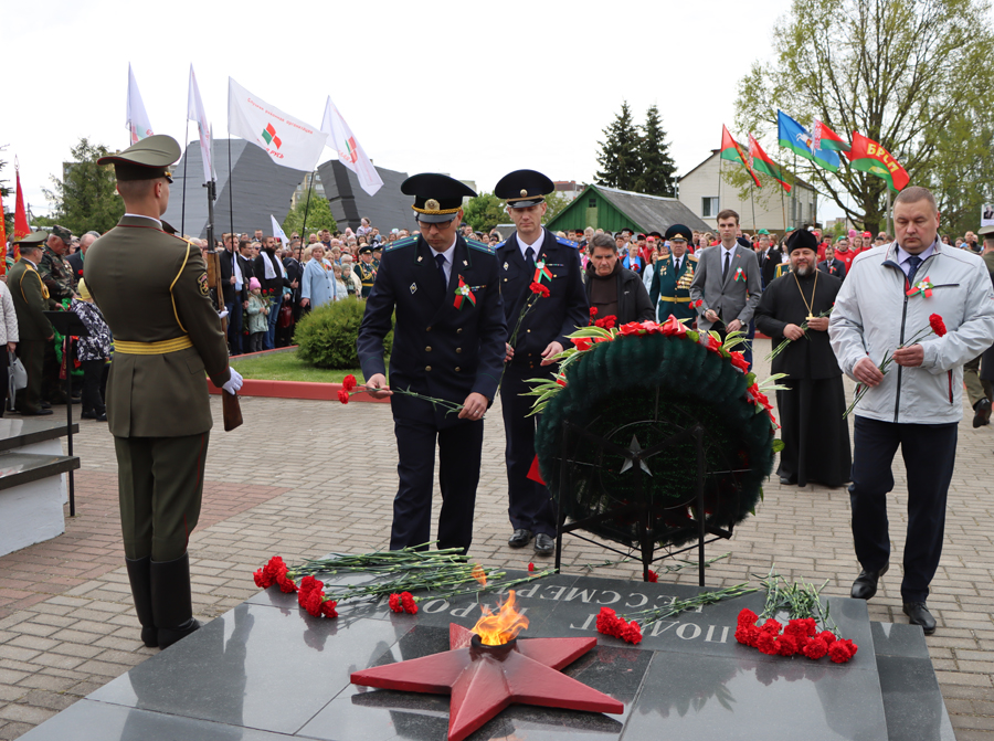 На мемориальном комплексе в Слуцке прошел торжественный митинг, посвященный Дню Победы. В нем приняли участие председатель Слуцкого райисполкома Владимир Гога, председатель Слуцкого районного Совета депутатов Александр Курак, депутат Палаты представителей Национального собрания Республики Беларусь Наталья Овсянникова, представители трудовых коллективов, общественных организаций, военнослужащие, слутчане. Минутой молчания почтили память погибших, к братским могилам возложили цветы.