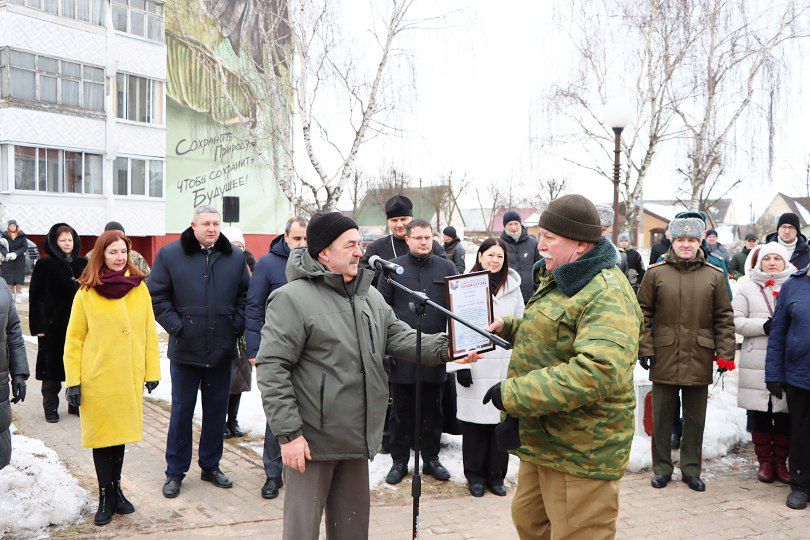 – Более 30 тысяч белорусов прошли через эту войну, честно выполняя интернациональный долг, около восьмисот не вернулись домой, среди них – 10 наших земляков, – сказал председатель райисполкома. – Эхо афганской войны и спустя десятилетия звучит в наших сердцах. Мы навсегда сохраним память о павших героях, о слезах сломленных горем матерей, вдов и детей. За время, прошедшее с момента вывода из Афганистана советских войск, этой войне давались неоднозначные оценки, но для белорусов воины-афганцы навсегда останутся настоящим символом верности присяге и стране.