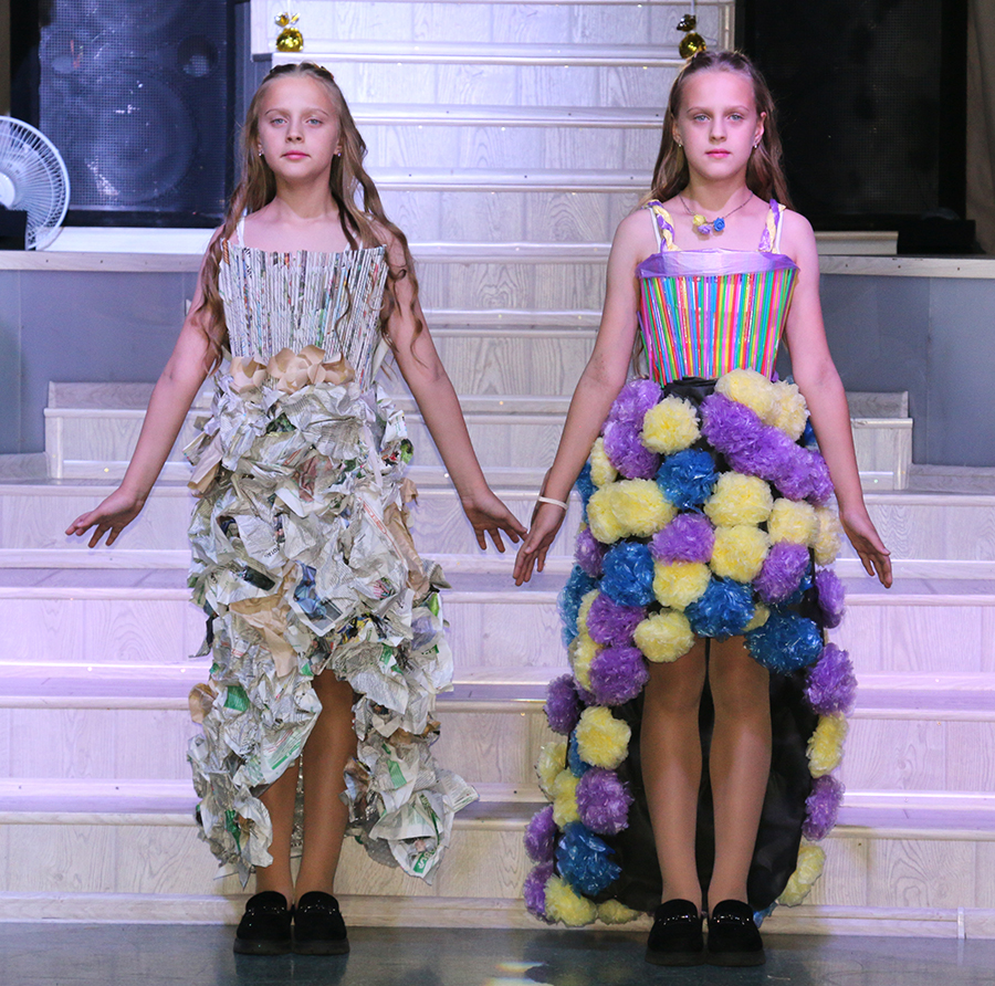 В конкурсе «Альтернативная мода» близнецы представили авангардные костюмы, сделанные своими руками из предметов, которые на первый взгляд, никоим образом, не ассоциируются с одеждой.