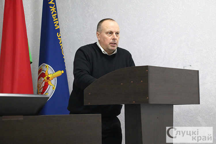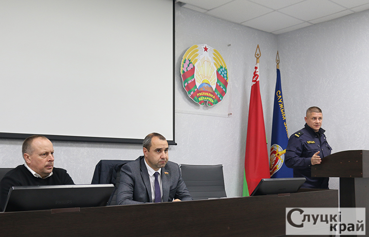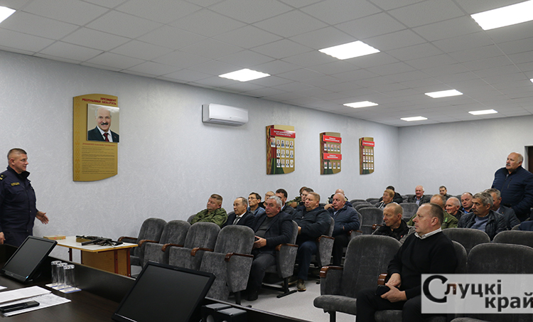 На базе отдела внутренних дел Слуцкого райисполкома прошло теоретическое занятие с председателями сельских исполнительных комитетов с участием председателя Слуцкого районного Совета депутатов Александра Курака, главного специалиста Слуцкого районного исполнительного комитета Михаила Воробья, заместителя начальника отдела охраны правопорядка и профилактики отдела внутренних дел Слуцкого райисполкома Николая Кравца.