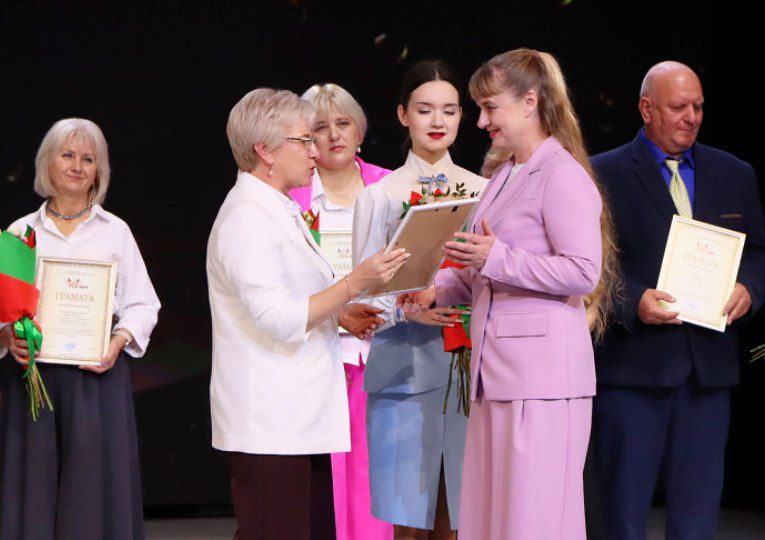 Председатель Слуцкой районной организации Белорусского профессионального союза работников культуры, информации, спорта и туризма Светлана Гуринович вручила награды от отраслевого профсоюза.