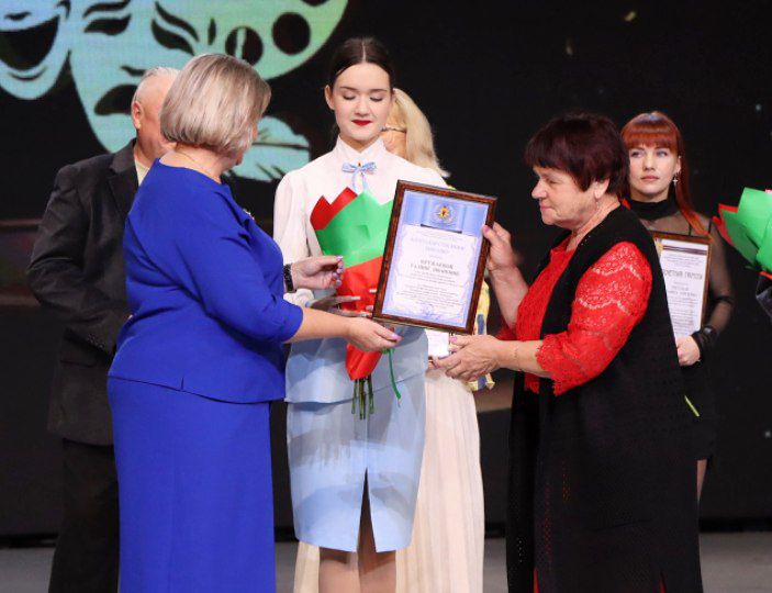 Благодарственные письма председателя Слуцкого районного исполнительного комитета вручили директору государственного учреждения образования «Весейская детская школа искусств» Ирине Брановец, заместителю директора по основной деятельности государственного учреждения культуры «Слуцкий районный центр народного творчества» Елене Воробей, костюмеру центра культуры и досуга государственного учреждения культуры «Слуцкий городской Дом культуры» Анастасии Грек, директору государственного учреждения образования «Слуцкая детская художественная школа искусств» Роману Колядко.